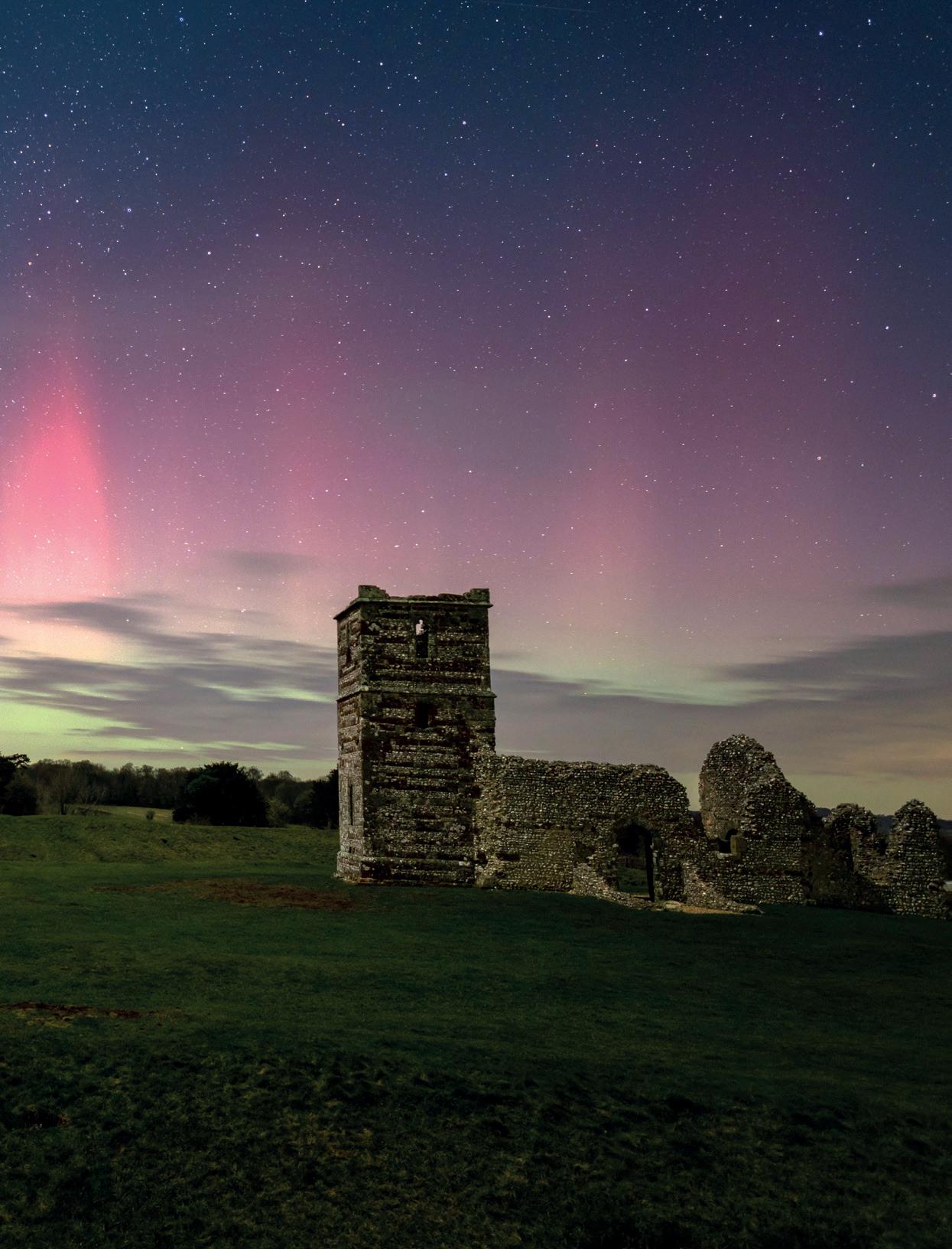 Whatever the weather, one of the most photographed sites in Dorset is the atmospheric hollow shell of Knowlton Church. When local photographer Steve Regan went there under clear skies on 27 February, he captured the spectacular Northern Lights above the ruins.