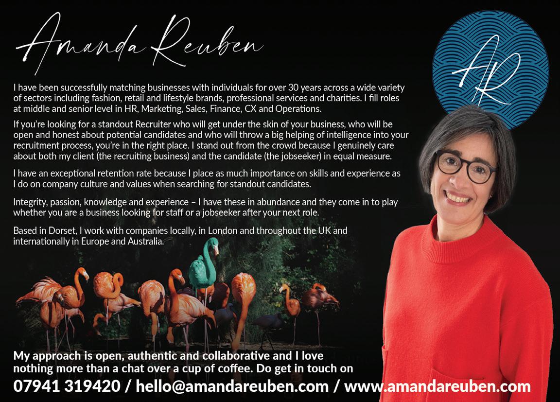 Dorset View is independently published and distributed free to homes and businesses in selected areas of Dorset and Hampshire. It is also available by subscription at £40 per year. Views or opinions expressed in Dorset View are not necessarily those of the publisher. The publisher reserves the right to refuse any advertisement deemed to be unsuitable for publication. Information about a service does not imply recommendation. All purchases made through this publication are done so entirely at your own risk. The copyright on all written material, logos and advertising artwork produced by our studio remains with Dorset View and should not be reproduced without prior written permission from the publisher. The company’s privacy policy can be read at www.dorsetview.co uk