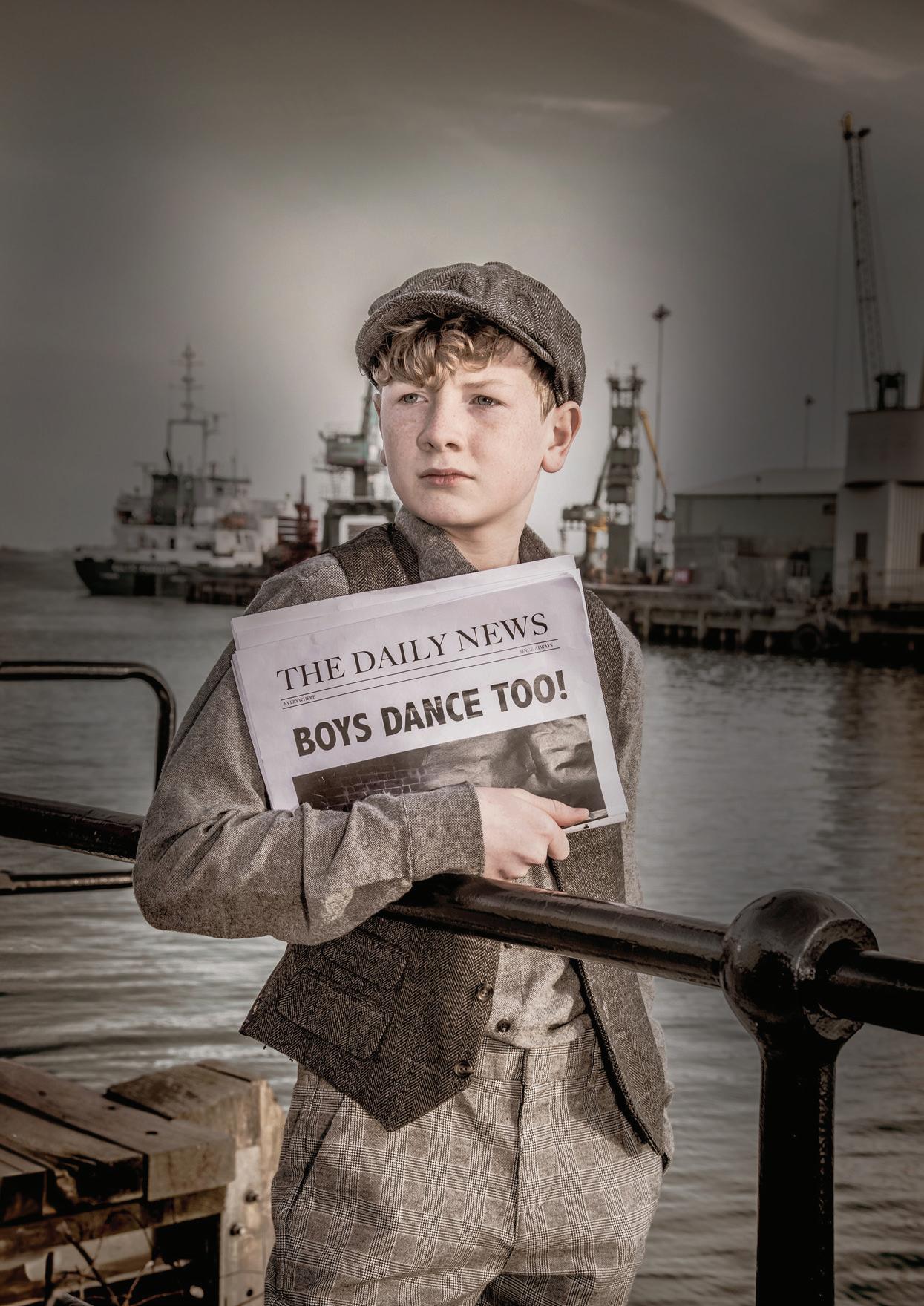 Her second honourable mention for Frontpage, People category, was awarded for her poignant and positive series that explores male identity. Male dancers from across the UK were pictured as part of a wider series, to promote National Boys Dance Day. The Newsies styled images spread the word that boys dance too. Set in locations with long histories of dock work, trade, coal, shipbuilding, and fishing, they present a visual challenge to the narrow understandings of masculinity being limited to traditional occupations and interests.
