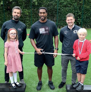 Sylvain Distin cut a ribbon and then enjoyed half an hour in torrential rain playing football with the children, declaring the new games area as a ‘wonderful facility’.