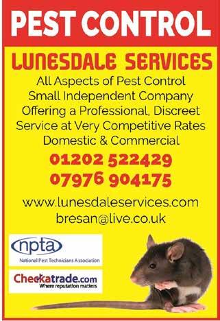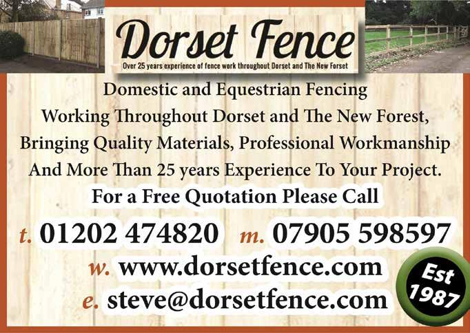 5 Garage doors and awnings Up and over • Roller • Sectional • Side hinged Any size, style and colour Electric or manual • Supplied and fitted Repairs and service Rear of 98 Ashley Lane, Hordle, Lymington SO41 0GA 01425 618636 www.advanceshutters.co.uk Advance Shutters Ltd Visit our showroom £100 off any new garage door when you mention this advert OFFER No Job Too Small - Serving Bransgore, Burley and Burton • Internal and external decorating • Basins & sinks • Regrouting • Boxing in • Hanging lights • Replacing sockets & switches • Letterboxes • Minor elec • Minor plumbing • Skirtings • Guttering • Shelving • Unit assembly • Hanging doors • Minor Plaster repairs • Blinds & Curtain rails • Wood staining • Carpentry • Shed assembly & demolition • Repairs and refurbishments • All handyman tasks undertaken Richard Bruton City & Guilds Craftsman Waterditch, Bransgore Tel: 01425 672274 Mob: 07834 724047 • Internal and external decorating • Carpentry • Basins & sinks • Regrouting • Boxing in • Hanging lights • Replacing sockets & switches • Letterboxes • Minor elec • Minor plumbing • Skirtings • Guttering • Shelving • Unit assembly • Hanging doors • Plaster repairs • Blinds & Curtain rails • Wood staining • Shed assembly & demolition • Repairs and refurbishments • Domestic and Commercial • All handyman tasks undertaken