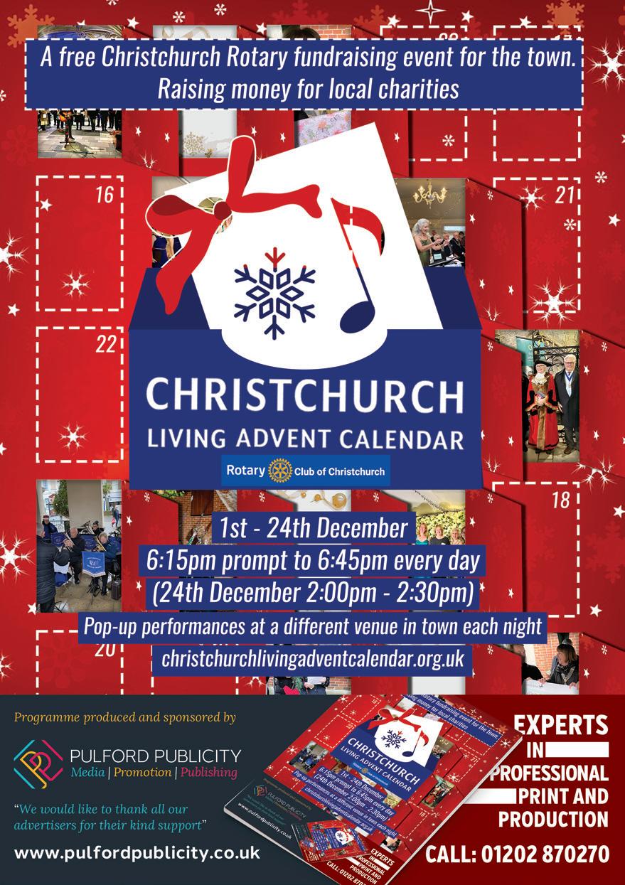 Each date supports a different local charity with a raffle and a freewill collection. Details from the CLAC website christchurchlivingadventcalendar.org.uk. Please follow us on Facebook. You can share any photos and news of our events using #CLAC2022