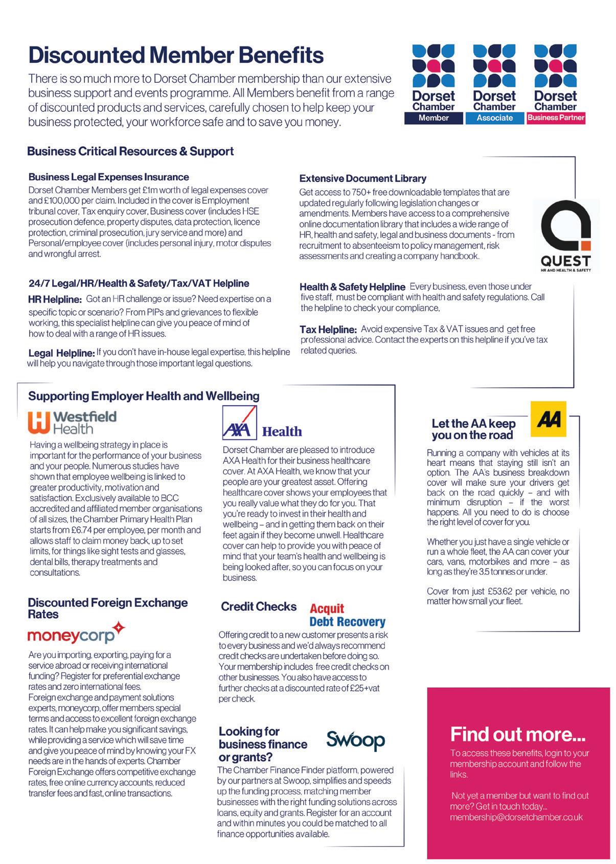 To find out more contact membership@dorsetchamber.co.uk | 01202 714818
