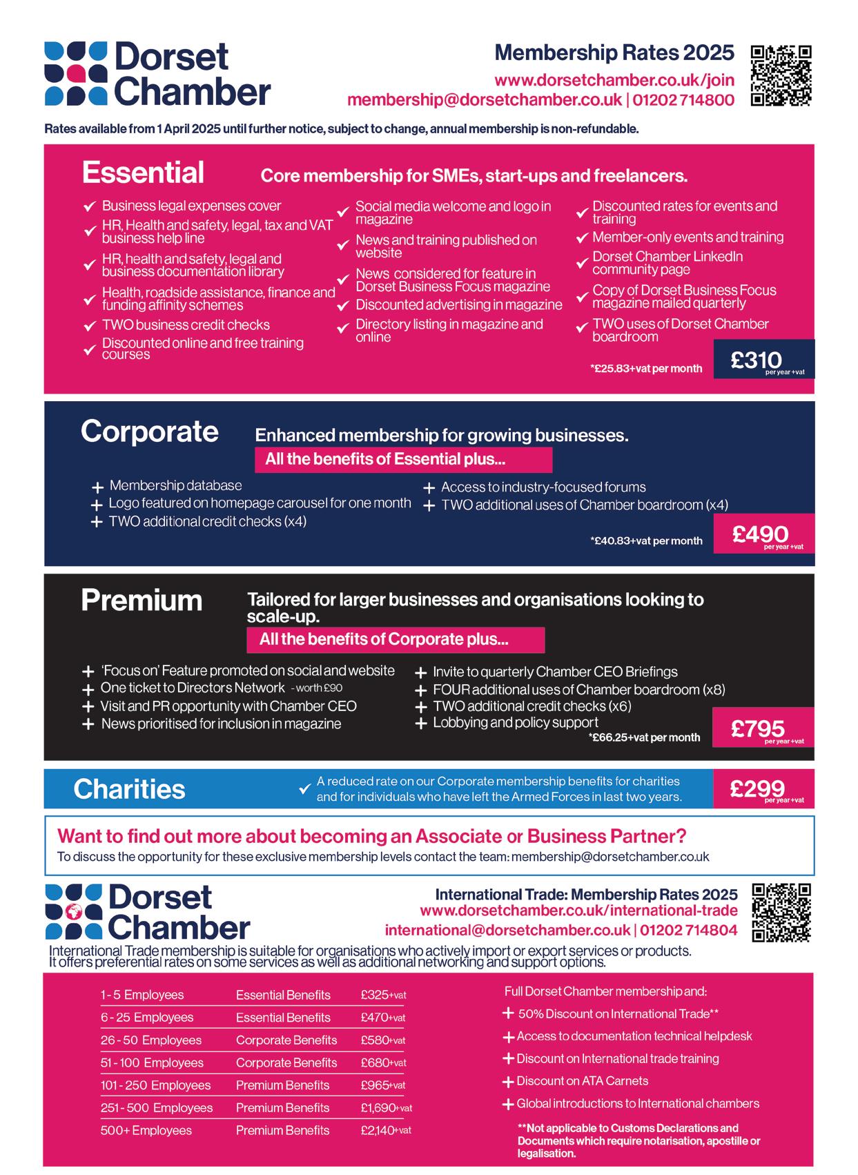 To find out more contact membership@dorsetchamber.co.uk | 01202 714818