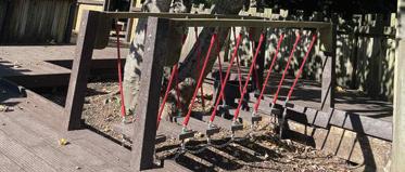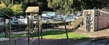 Work has been done to repair the existing fort structure using recycled plastic and groyne timbers, alongside a new multi-play climbing frame and replacement swings. An access ramp has also been repaired.