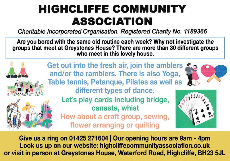 38 Highcliffe Food & Arts Festival 10.00am | Funky J Fitness Funkyjfitness.co.uk / juliehousezumba@yahoo.com 10.45am | 20:1 Big Band www.20to1bigband.com / 20to1bigband@gmail.com / 07794539036