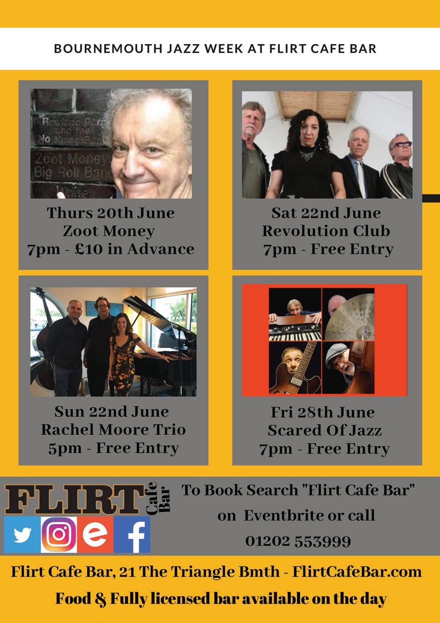 Flirt Café 6.30pmPress Launch Flirt Café 8pmZoot Money & his band