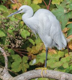 small mammals and frogs, which they swallow whole. White egrets were once persecuted for their wonderful neck plumage that heralds the breeding season. The birds were almost wiped out in the 1800s when their plumage became fashionable and was highly sought after. At one time, it was said the neck plumes of Little Egrets were more valuable than gold. This didn’t go unnoticed by a passionate group of people in Didsbury who amalgamated with Fur and Feather meetings in Croydon in 1891 which became the Royal Society for the Protection of Birds (RSPB) in 1904. The RSPB’s original raison d’etre was achieved in 1921 when the Importation of Plumage (Prohibition) Act was passed in time to save the birds from extinction. More birds gained protection with the Protection of Birds Act that followed in 1934 and 1954. In 1981, the Wildlife and Countryside Act, given to us in part by the EU Birds Directive, came into being. All birds in England, Wales and Scotland including their nests and eggs, are protected by law, with certain exceptions. Visit www.rspb.org.uk for the most noticeable exceptions and the schedules of protected birds.