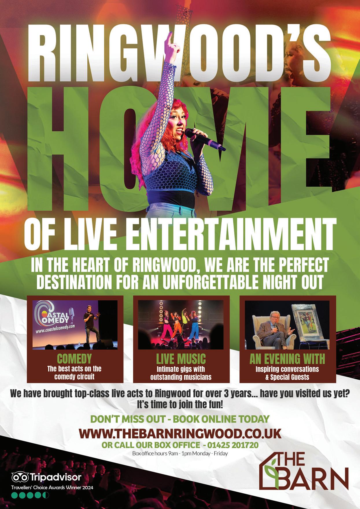 On 10 December, there is a free Christmas concert performed by the Bournemouth Youth Marching Band in The Barrington Centre at 7.15pm. And on 12 December, there will be carol singing around the Christmas tree outside The Barrington from 6pm, accompanied by Ferndown Concert Brass. Afterwards, there will be a free concert by Five Star Swing inside the arts centre at 7.30pm. This is a ticketed event with a suggested donation of £10, available to reserve online or in person at the box office.