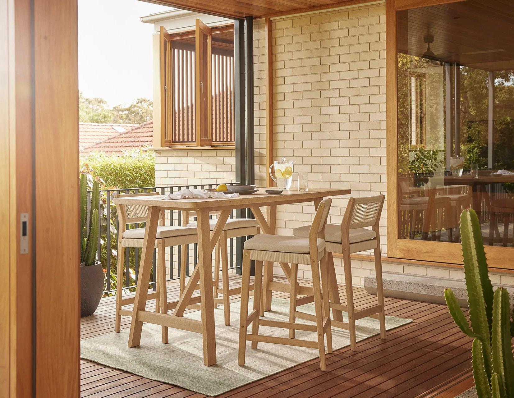 Freedom Furniture visual merchandiser Kate Young says, “Outdoor furniture is exposed to a lot of conditions so, you need to weigh up which materials will need maintenance over others and if you’re willing to put in that level of care.”