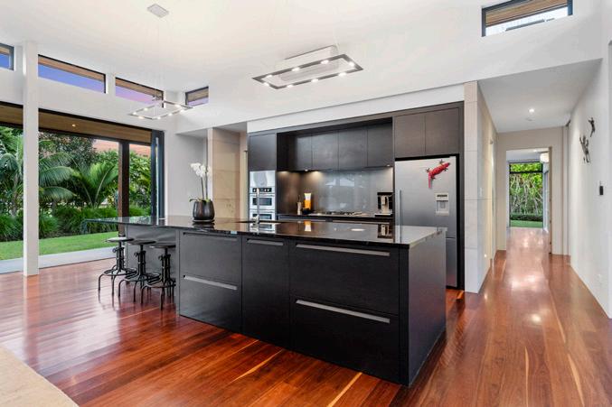You'll entertain from the bespoke kitchen with premium integrated appliances, serve from the bar with stunning Armand black copper woven panelling or simply pull up a stool for a casual weekday meal.
