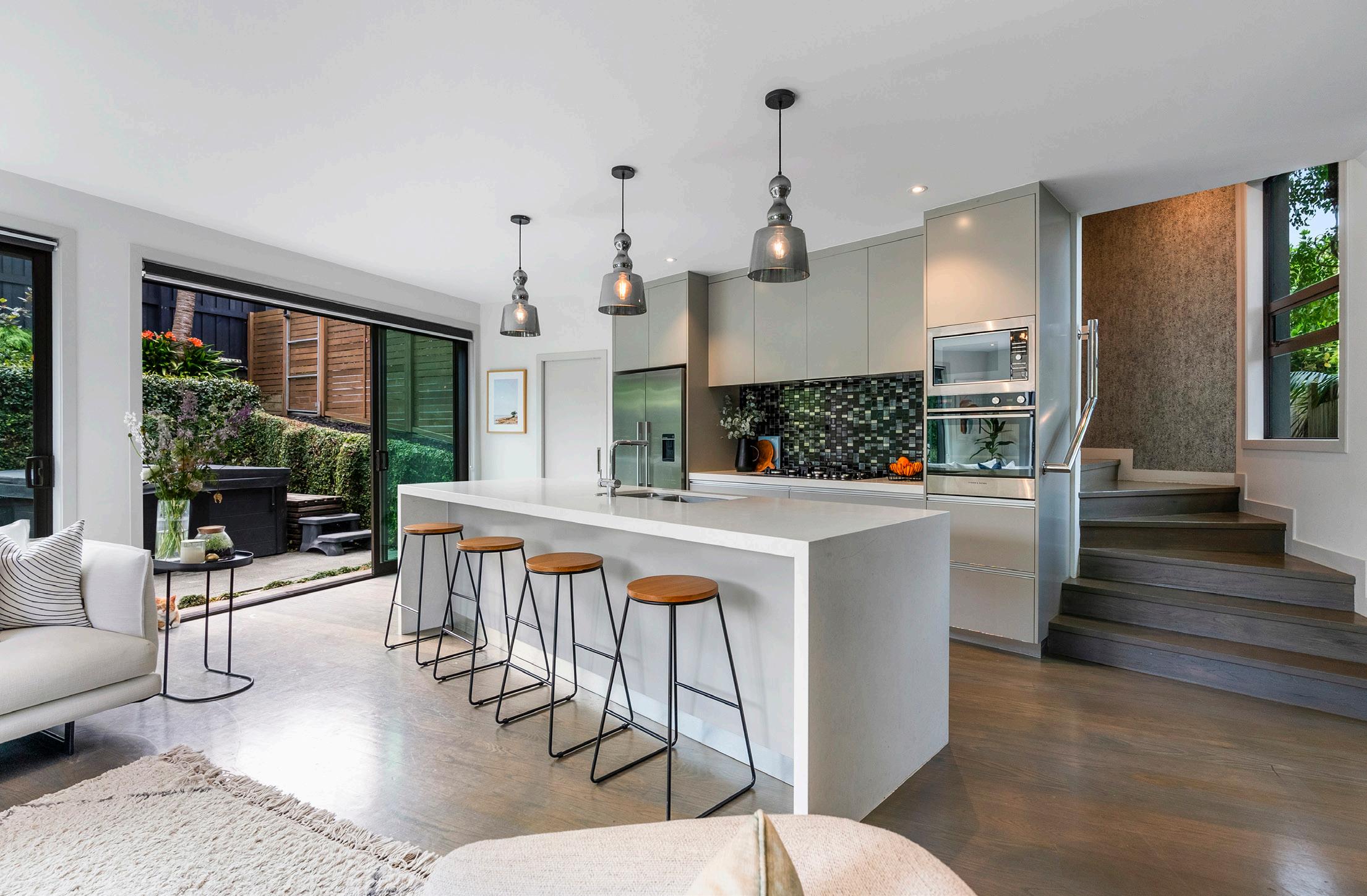 The family will love time in this oversized kitchen with premium integrated appliances, Bosch double oven and the stunning bespoke glass splashback. Pull up a bar stool for more intimate, casual dining and it's the perfect spot for an end of day wine and debrief. Discreetly aside you'll find a powder room and office/bedroom, before ascending the solid oak staircase to where all bedrooms present with either park or harbour views.