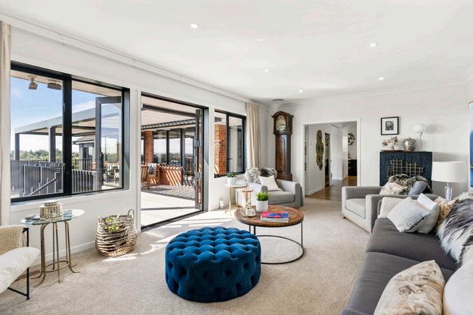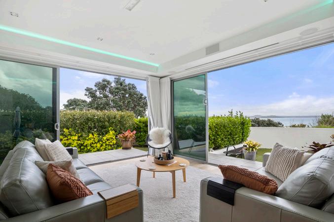 Accessed via a secure gated driveway, the residence spans three levels and features a Schindler lift for seamless mobility. The top level offers panoramic views extending from the bays to the city, overlooking Glover Park towards Beachlands and beyond.