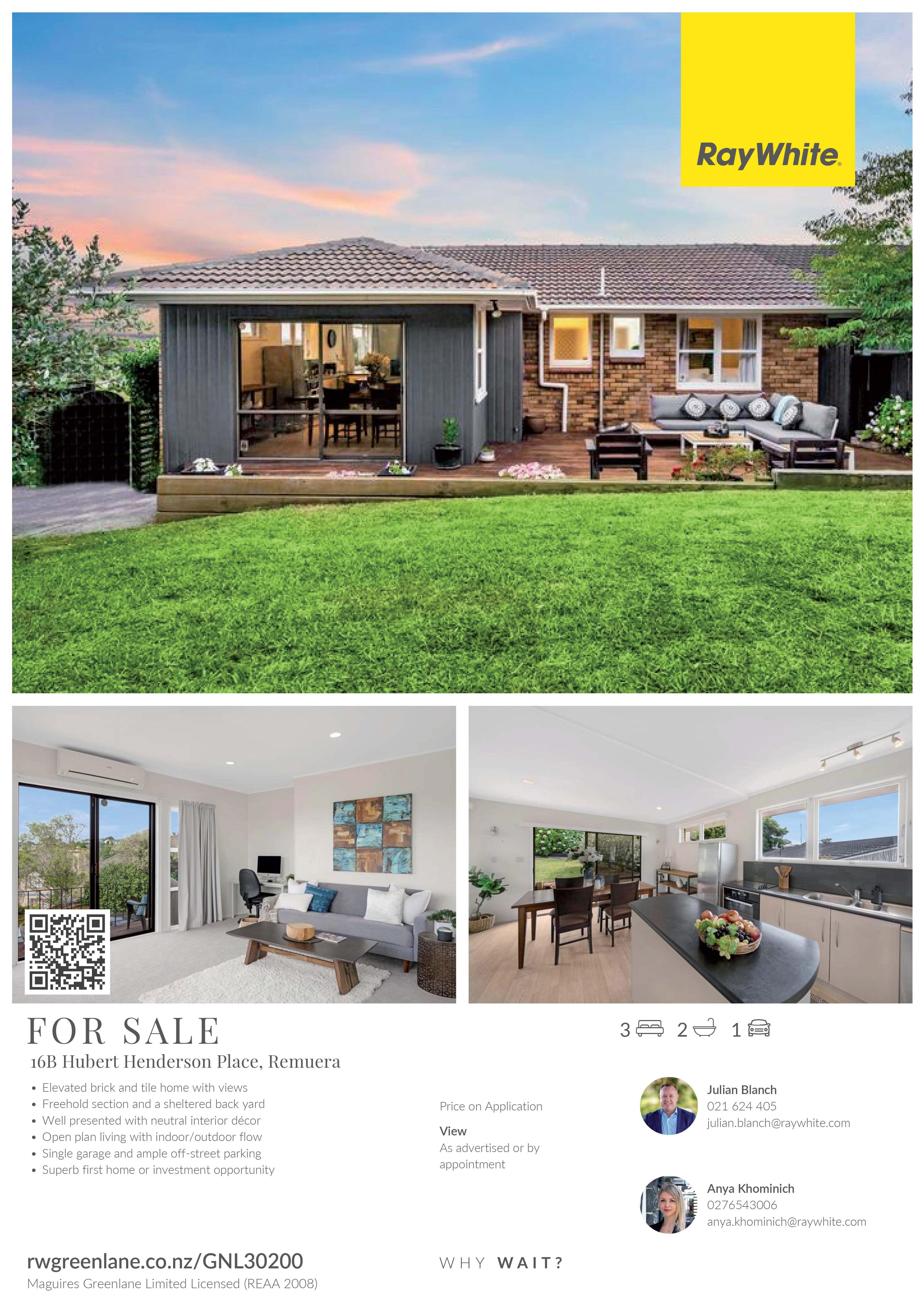Call JULIAN BLANCH at 021 624 405, ANYA KHOMINICH at 027 654 3006, or WAYNE MAGUIRE at 0274 22 33 77.
