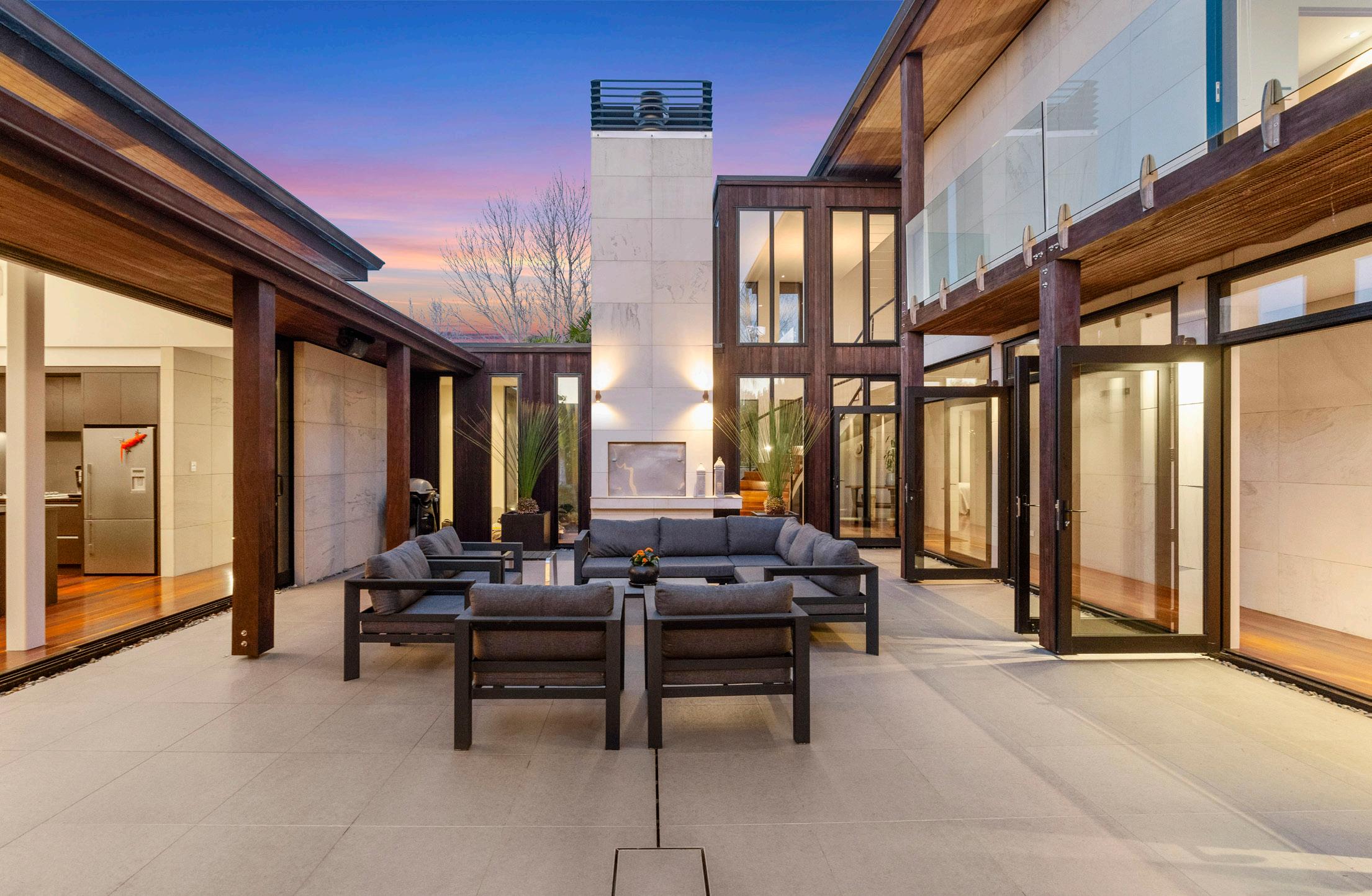 Opulently spacious, on offer is 498m2 of luxury living. The hub of the home is the open plan Kitchen (& Butlers kitchen), dining and living - surrounded by the beautiful stone cladding both inside & out; the Cedar & Tonka wood supports dreamily interface with Iron Bark wood flooring throughout. Free flow indoor/outdoor either side of the lounge, fully retractable sliders, electric airflow windows. Enjoy the large 100m2 courtyard as an extension to your living, with a gas fireplace keeping the ambience alive.