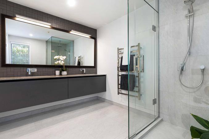 The primary suite promises absolute rejuvenation with spectacular sweeping views out to Musick Point and beyond, a walk-through wardrobe and oversized resort style ensuite with Hansgrohe fittings and rainshower. Title and CCC now issued.