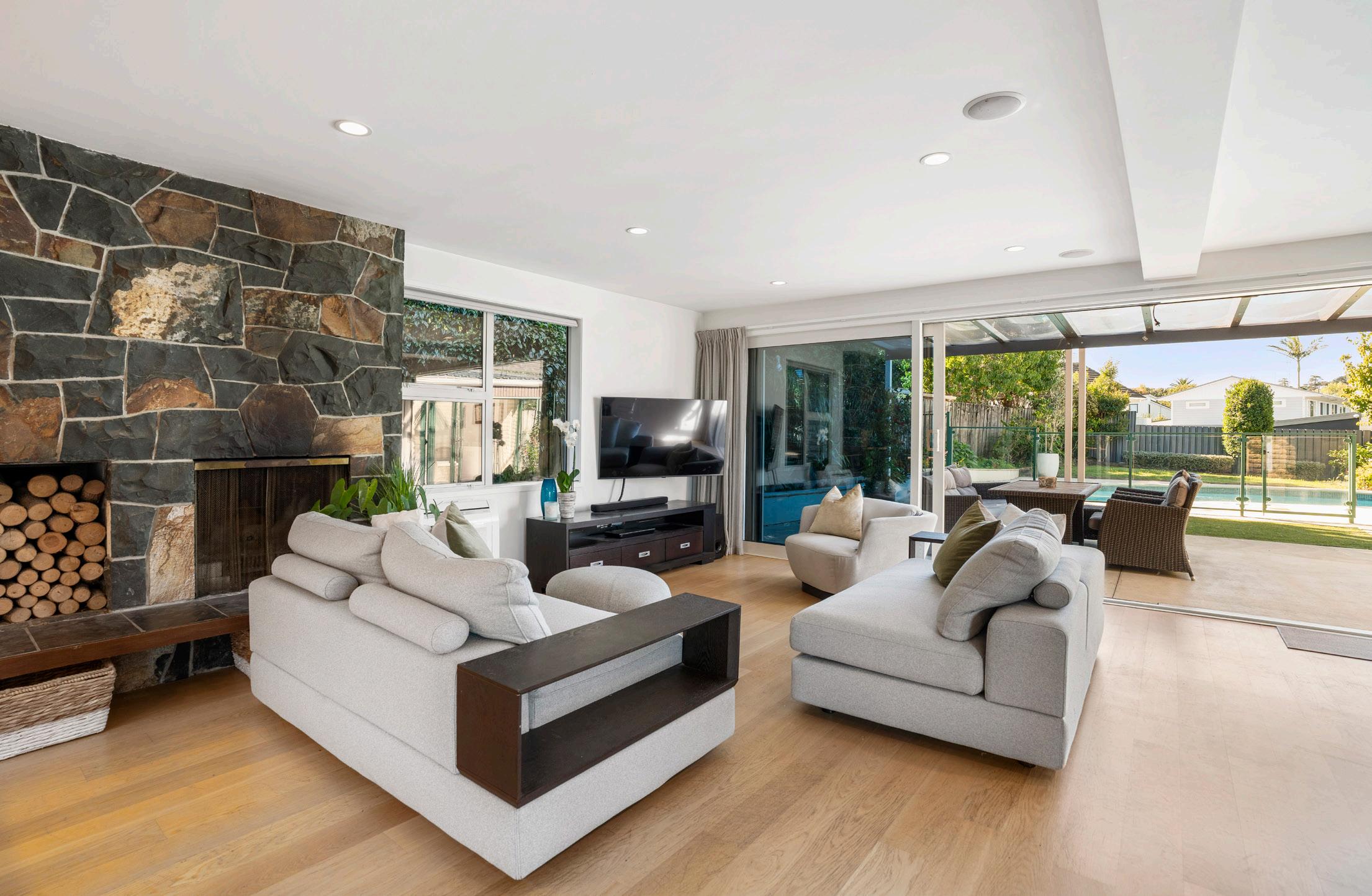 Spread over 3 levels, with the middle level being the hub of the home, featuring a generous bespoke kitchen, fitted with quality appliances, plenty of bench space, storage options & dumbwaiter plus a well designed scullery. The open plan living/dining flows effortlessly through large ranch sliders onto a covered area, established gardens, heated swimming pool and separate pool house.