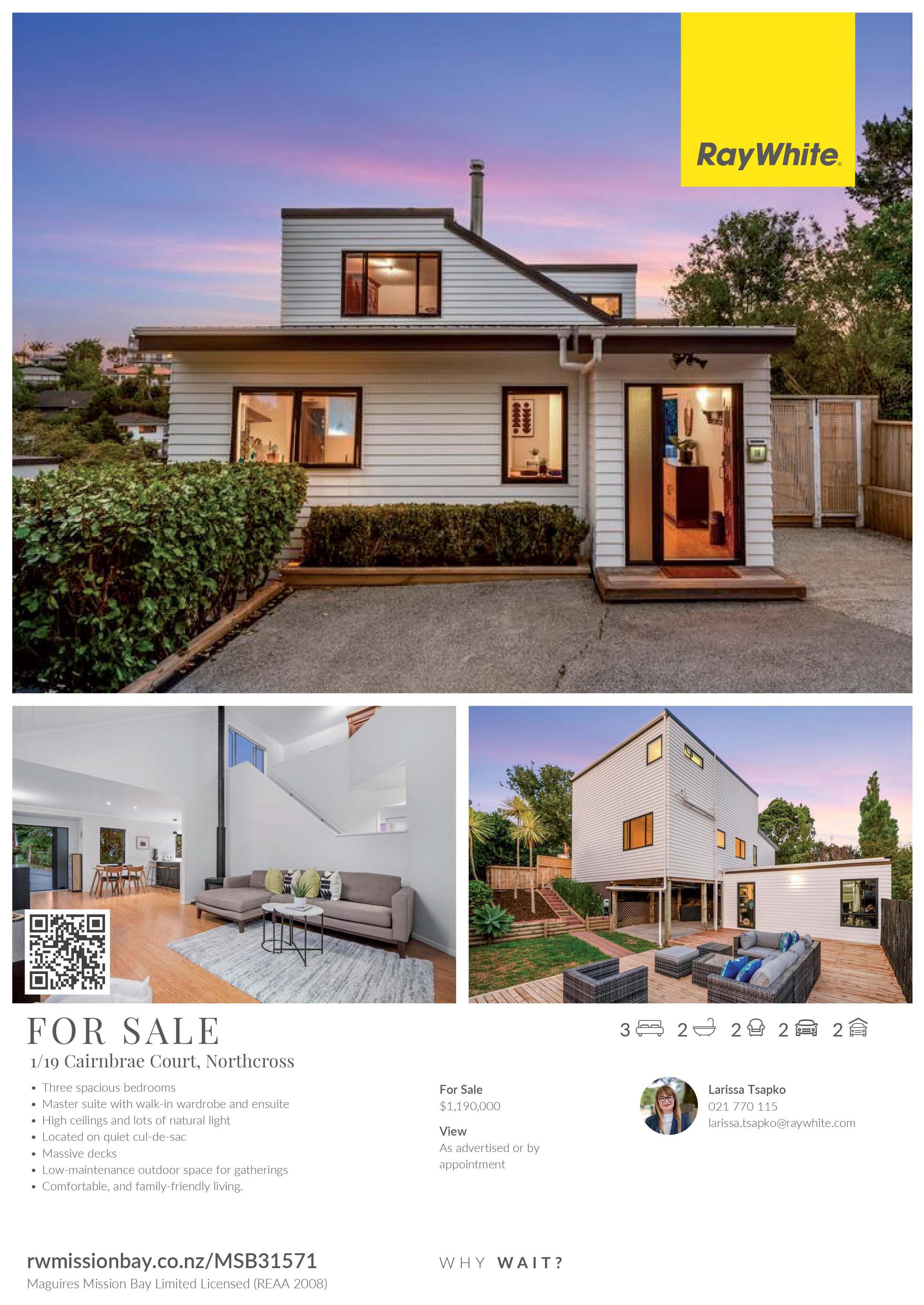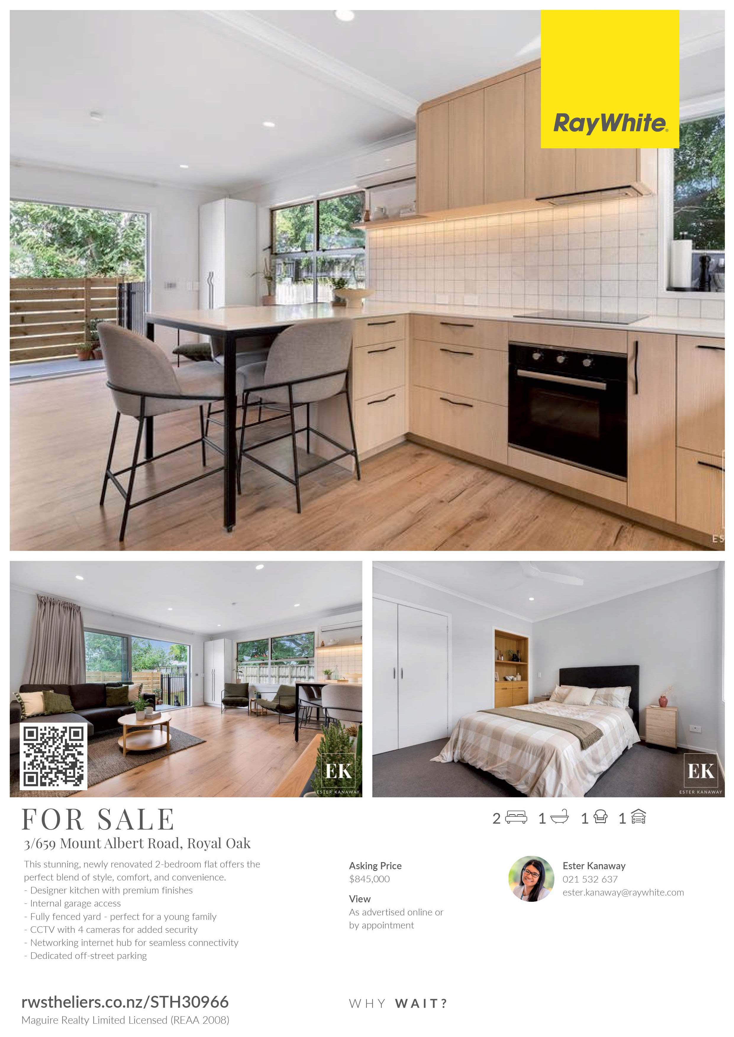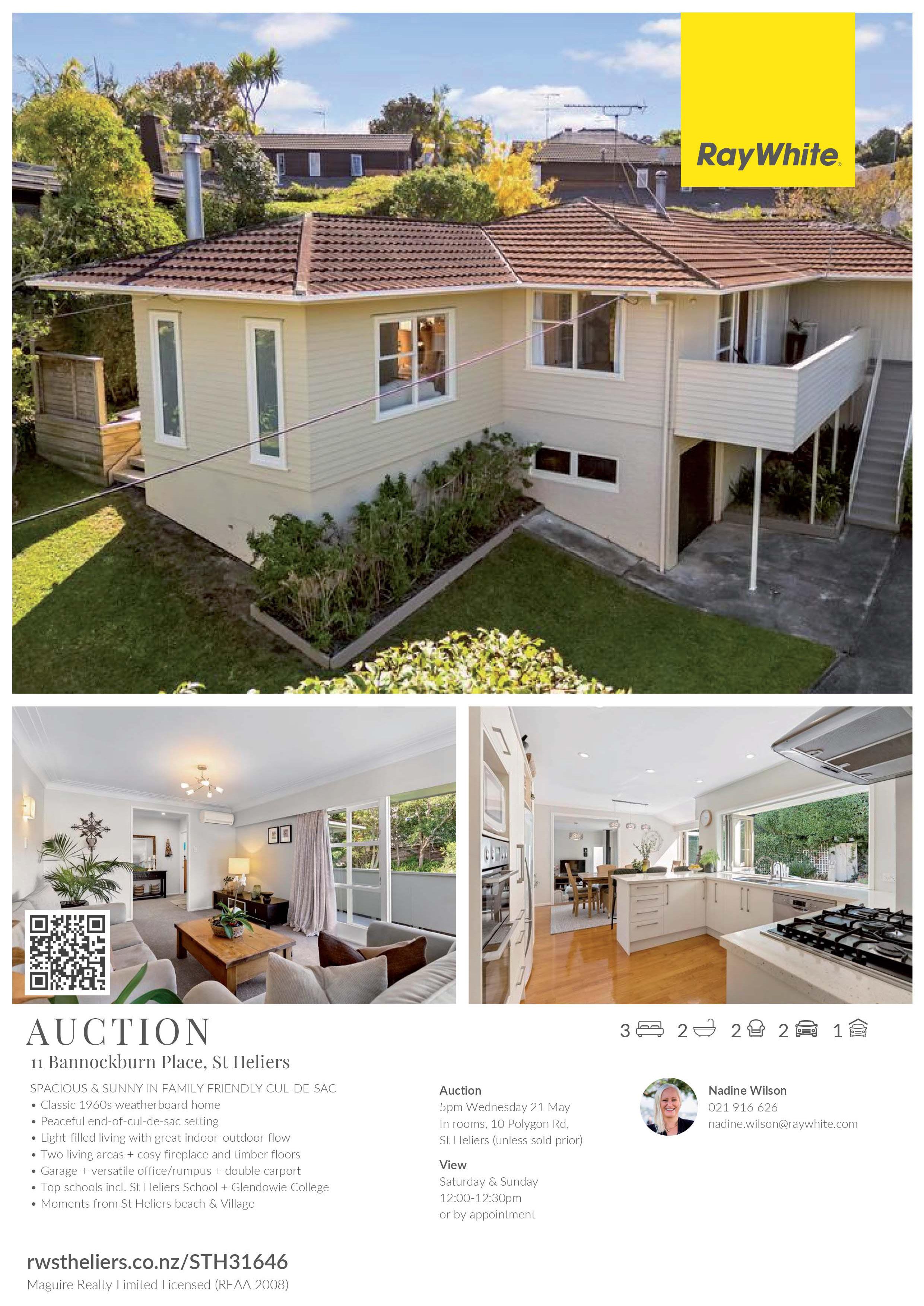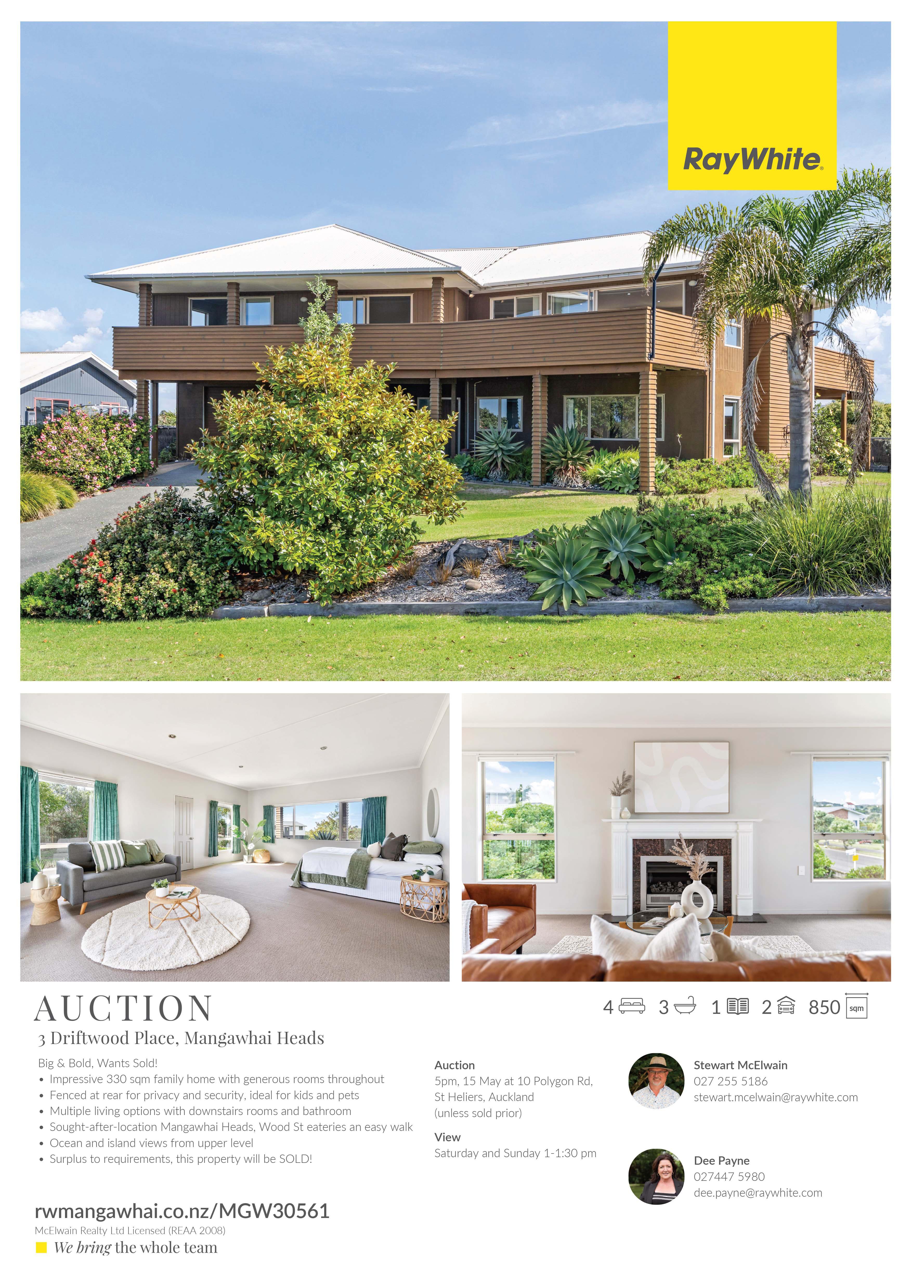 Auction: 1:00pm, Wednesday 4th June, In Rooms, Ray White St Heliers 10 Polygon Road, St Heliers (unless sold prior)