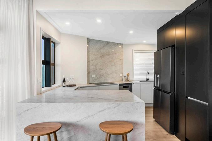 The fully renovated interior boasts numerous highly specced inclusions with uncompromising attention to detail. Expansive floor to ceiling glazed windows honour the vibrant waterside scene while a curved balcony complete with view enhancing glass balustrade creates a seamless connection between indoor and outdoor living. With facade spanning both west, north and eastern aspects, the apartment deftly maximises natural light, crossflow ventilation, along with the panoramic views. A Renai fireplace in the lounge, underfloor heating in bathrooms and two heat pumps ensure year-round comfort throughout the naturally warm and sunny home. The designer kitchen cleverly integrates versatile dual-use scullery/laundry and a full suite of the latest appliances amidst sophisticated engineered stone benchtops and splash walls.