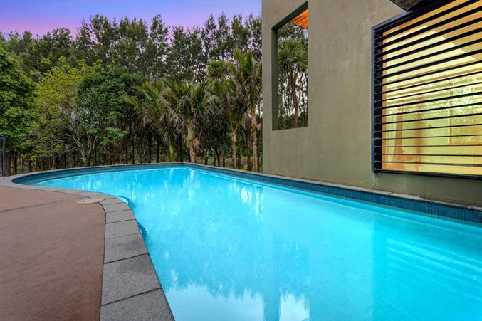 A heated swimming pool, ambient garden and pool lighting, and lush landscaping create a holiday-at-home vibe, while a fully self-contained unit provides flexible options for Airbnb, extended family, or teens seeking independence.