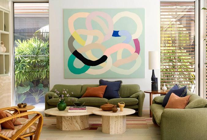 “Many galleries choose white because it creates a neutral backdrop, which lets the artwork take centre stage without distractions,” says Anna. But at home, art can play very nicely with coloured walls. “Rich colours or muted tones can work beautifully as a backdrop to your art. They can enhance the mood of a piece or complement your overall decor. Even a soft, subtle shade can add warmth and depth without overshadowing the art.”