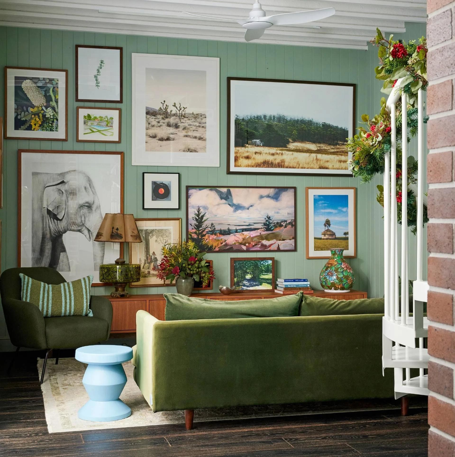 “If you’re more into an eclectic vibe, try a ‘salon hang’. That’s when you cluster works together on one wall. It’s playful, personal and lets you get creative with the arrangement,” says Anna.