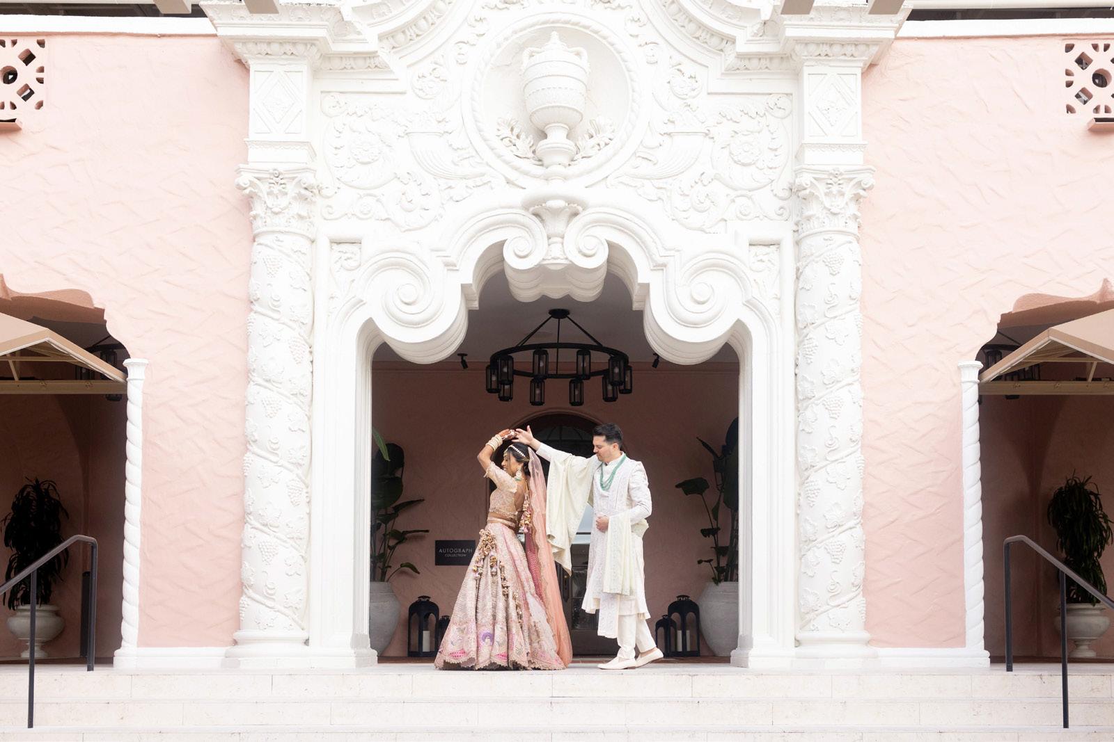 Set against the historic beauty of the Arizona Biltmore in Phoenix, AZ, Kritika Dubey and Neil Majmundar’s wedding was a masterclass in elegance, personal touches, and pure joy. The couple’s celebrations spanned an unforgettable weekend — beginning with a lively karaoke party and poolside drinks on October 24, a vibrant sangeet on October 25, and culminating in their ceremony, cocktail hour, and reception on October 26, 2024.