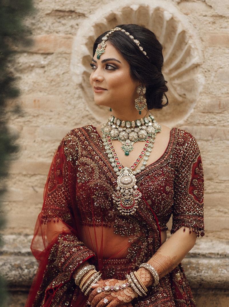 Nirali’s bridal look was rooted in tradition. “I always wanted to wear red,” she says. During a shopping trip to India, she found her lengha—the very first one she tried on. “I knew it was the one when I saw my family’s reaction.”