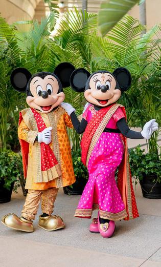 The experience can extend beyond the stage, with elaborate wedding-style henna and magical meet-and-greets where Mickey & Minnie appear in cultural attire to celebrate alongside the couple and their guests.
