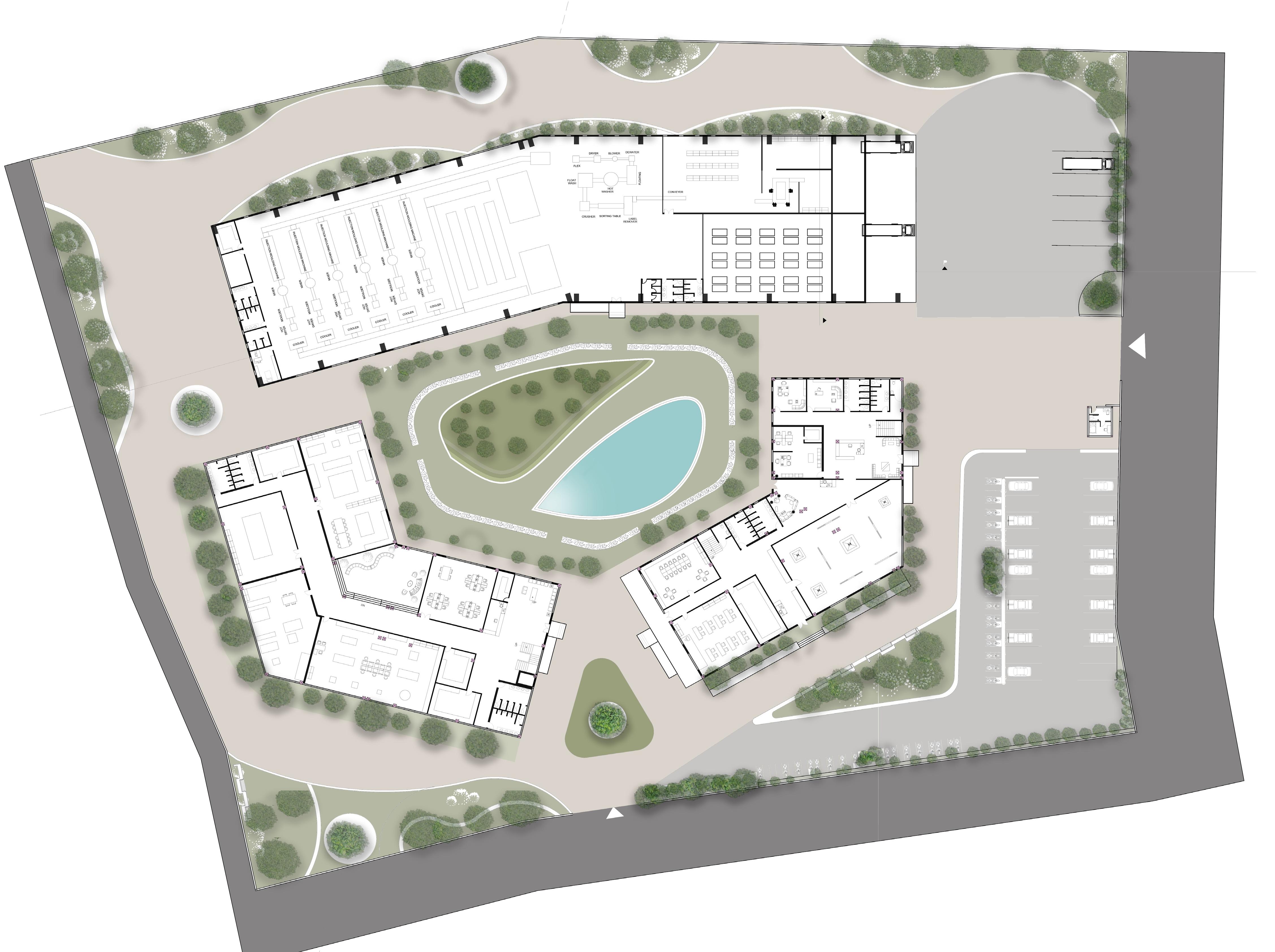 Green spaces is provided to attract visitors in order to educate them on waste management and recycling through design strategies.