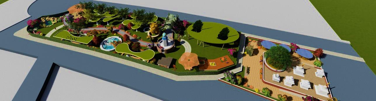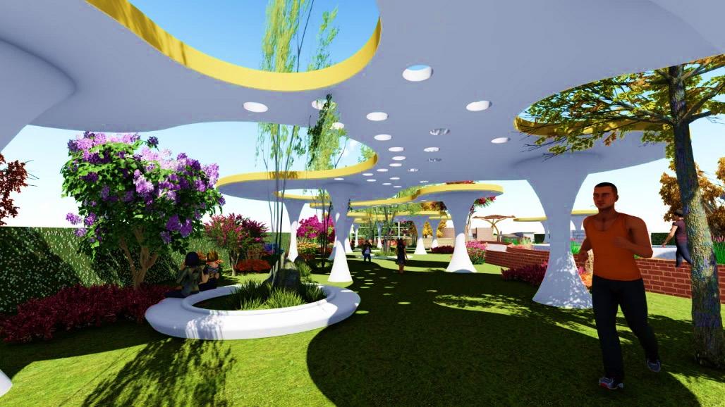 • Plants of different colors and sizes were used. Tall trees were used in boundary followed by medium and small trees and plants.