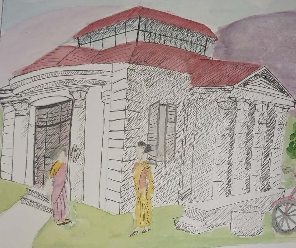 This house was the model house of cost-efficient earthquake resistant house made with materials available in the local region. The building was made with the help of materials such as mud, bamboo, wood, brick, etc.
