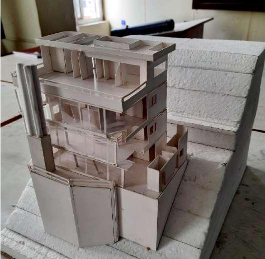 The side photos display the working designs of the residence after teacher consultation and any necessary adjustments, as well as the municipal drawing.