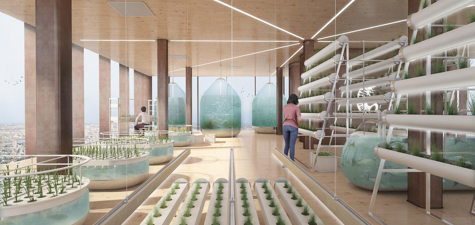 hyper realistic hydroponic architecture for the future food innovation centre, interior view