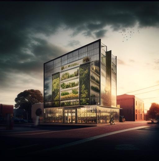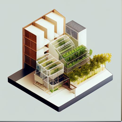 The image created by Midjourney delves into the possibilities of integrating sustainability and urban farming directly into the building facades, showcasing a departure from the conventional notion of confining such practices to designated spaces. This exploration highlights how architecture can play a vital role in promoting and accommodating sustainable initiatives seamlessly within its structure. The image demonstrates a visionary approach that envisions the incorporation of greenery and farming elements throughout the building, creating a harmonious blend of functionality and aesthetics. It inspires the reimagining of urban spaces, encouraging the integration of sustainable practices into the very fabric of our built environment.
