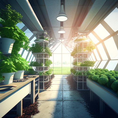 The image created by Midjourney provides valuable insights into the effective design of a space by aligning different areas with their respective programs. This double-height space features large windows that flood the area with abundant natural light and create a visual connection to the surrounding environment. Notably, one side of the space showcases a thriving growing area, while the lower floor accommodates a conveniently placed kitchen space. This design iteration optimizes functionality and convenience, allowing for seamless interaction between the growing and culinary aspects of the space