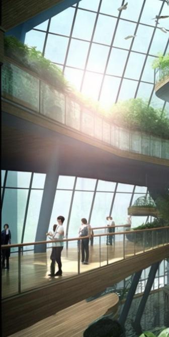 The image generated by Midjourney perfectly aligns with the space I envisioned for my design ideation. It seamlessly combines elements such as vertical farming, recreational areas, and a double-height space. This concept allows for the exploration of design components like double volumes, creating a sense of depth and intrigue as one moves through various interconnected spaces. The integration of vertical farming adds an innovative and sustainable aspect to the overall design. It’s an exciting combination that offers ample opportunities for creativity and functional aesthetics.