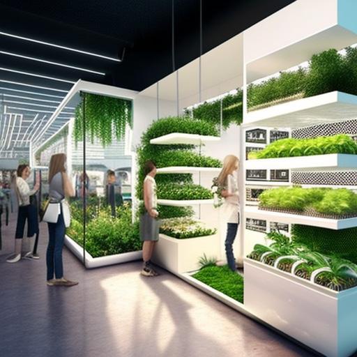 hydroponic farm in a future food centre for the community, hyper realistic, interior view