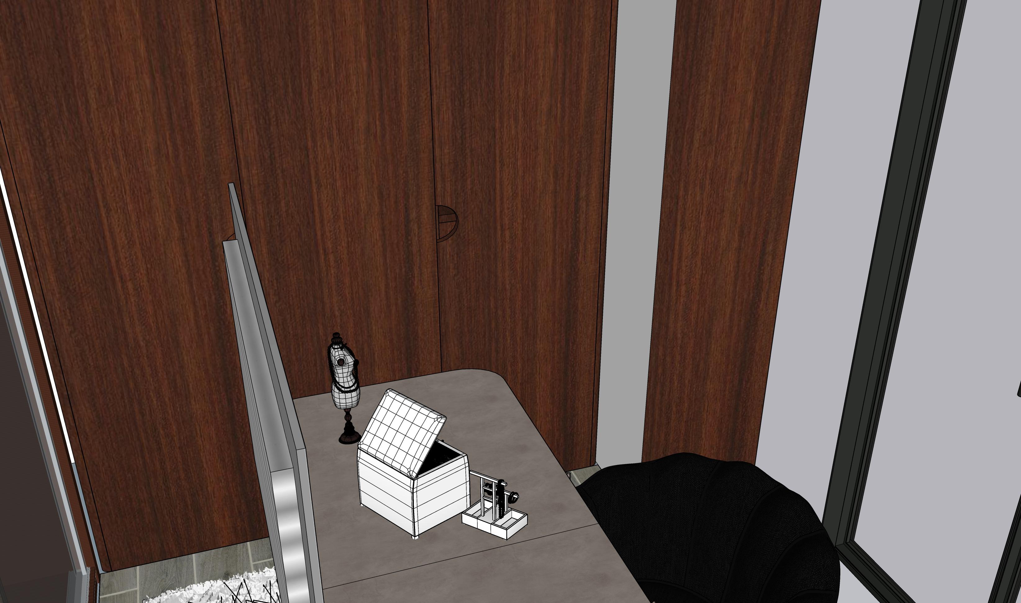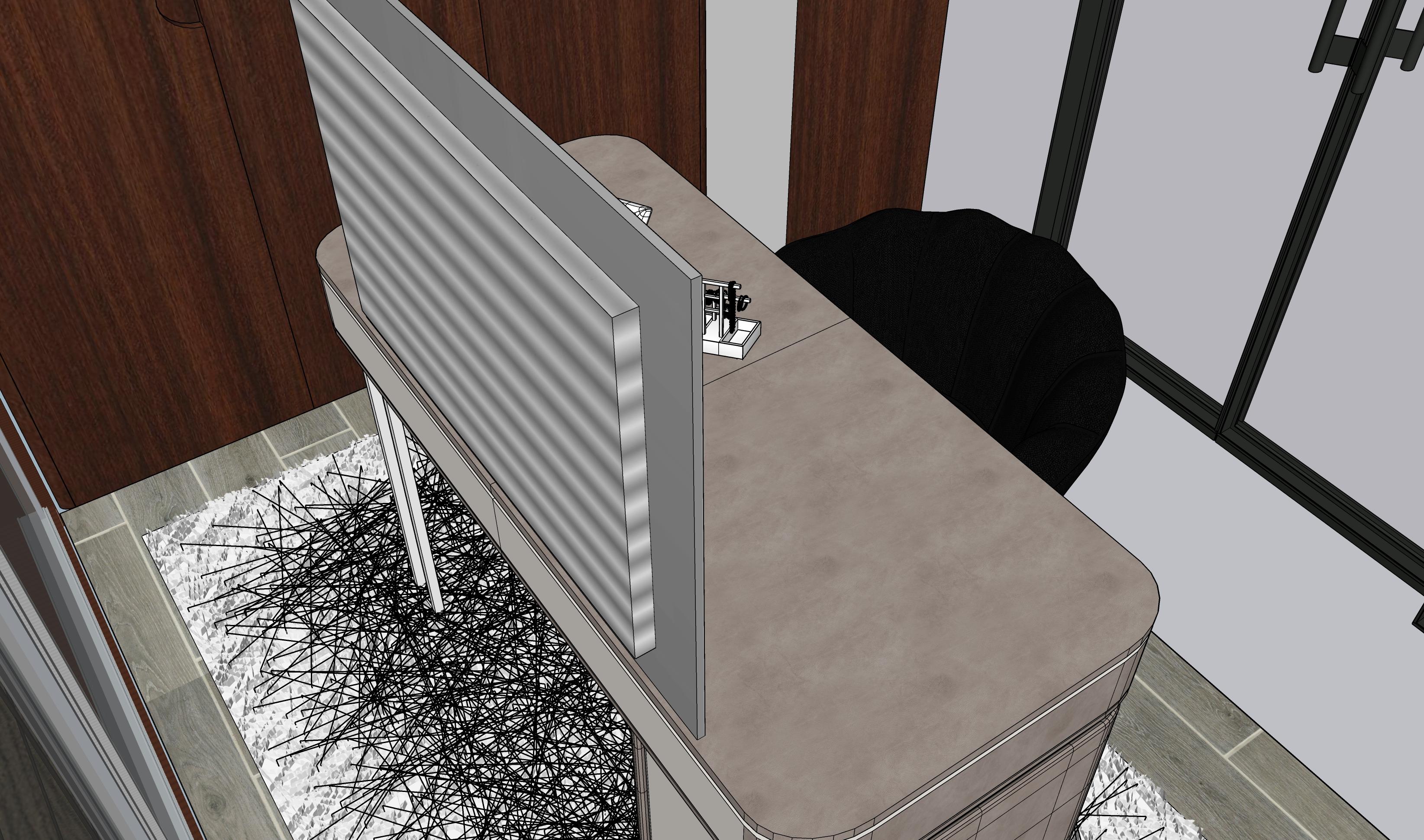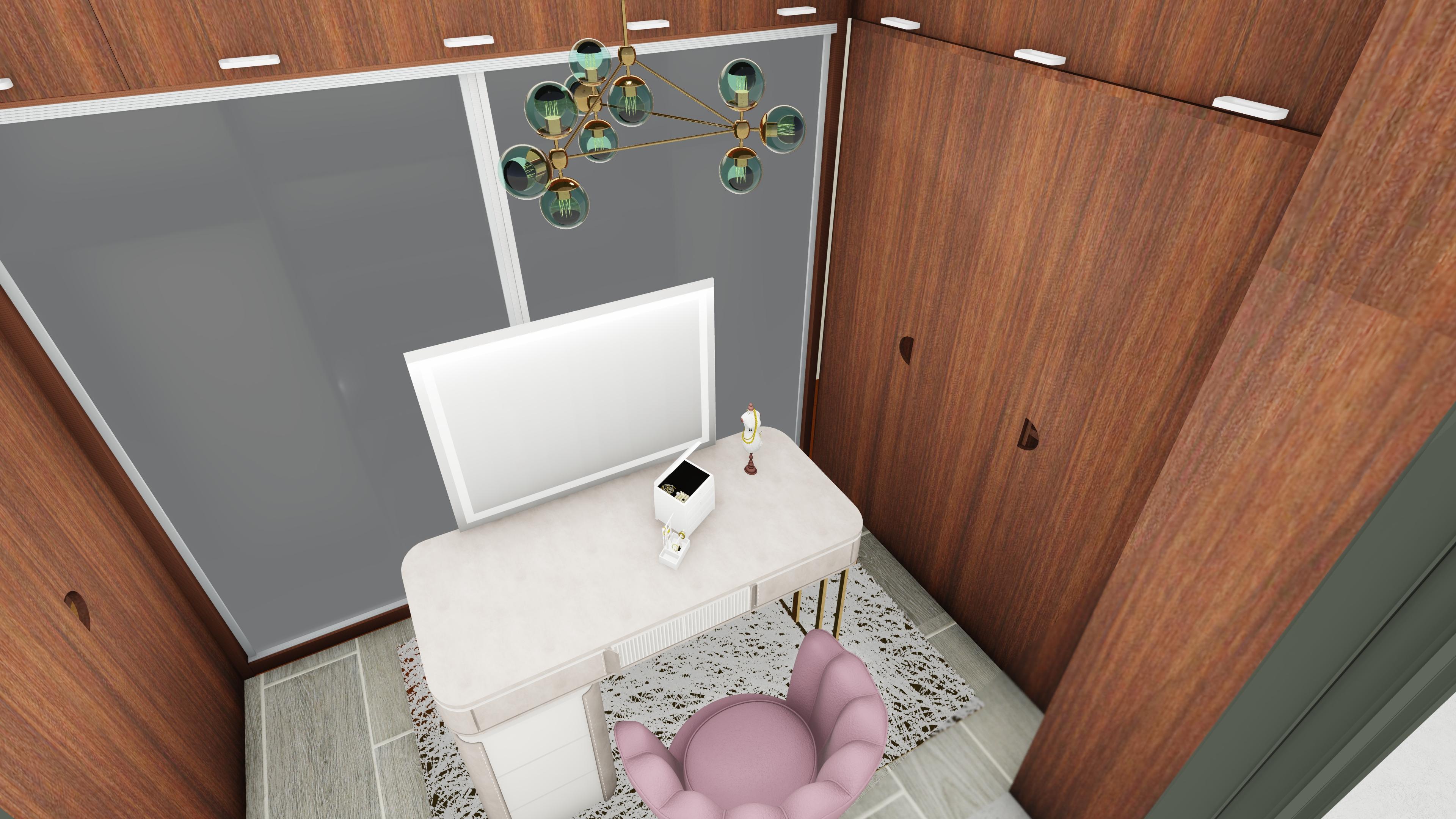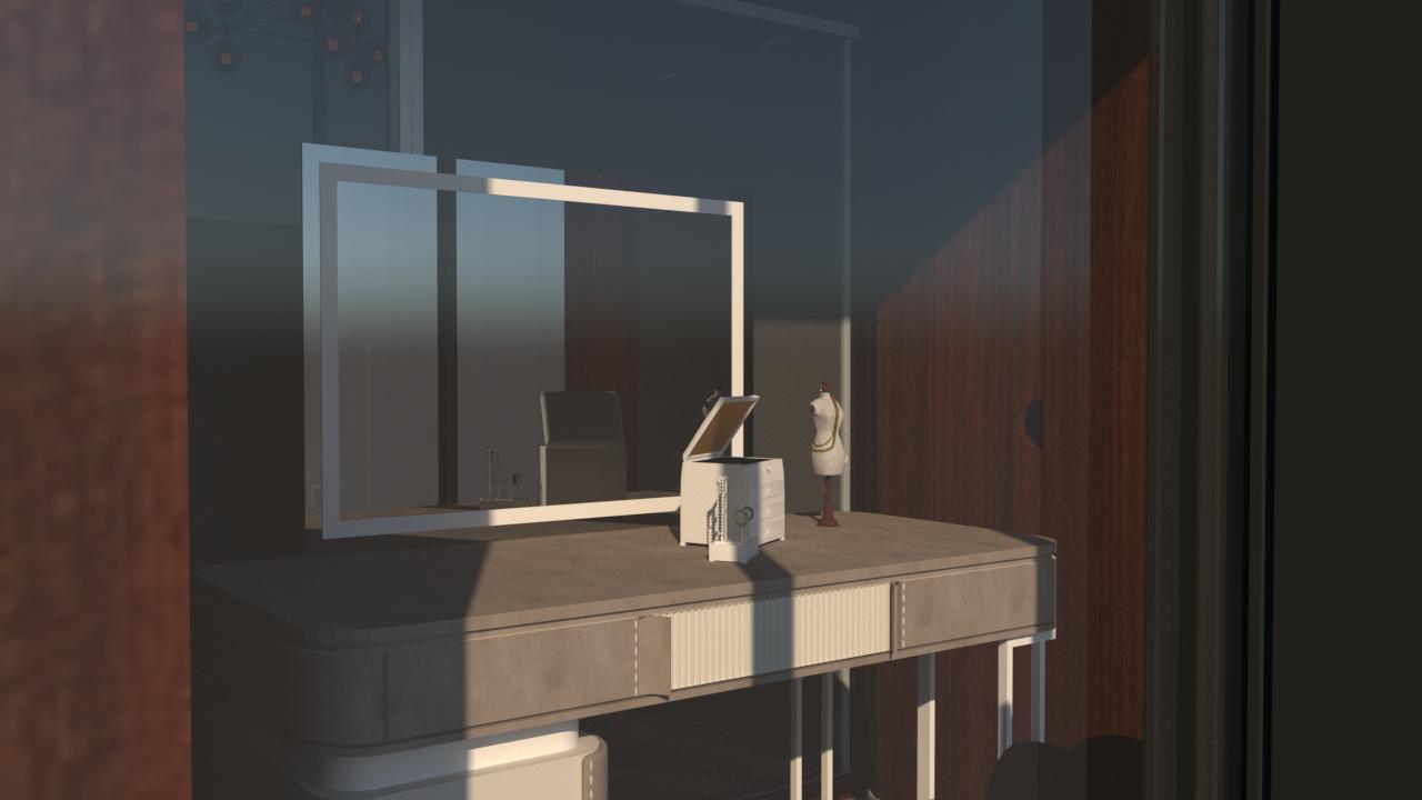 Other than Lumion, I also experimented with VRay and was able to create a number of photorealistic renders of the dressing area. Though the learning curve was steep, after much trial and error, I was able to achieve good quality renders. However, I still struggled with lighting and if I would do it over, I would definitely spend more time learning and trying to perfect the lighting and atmosphere.