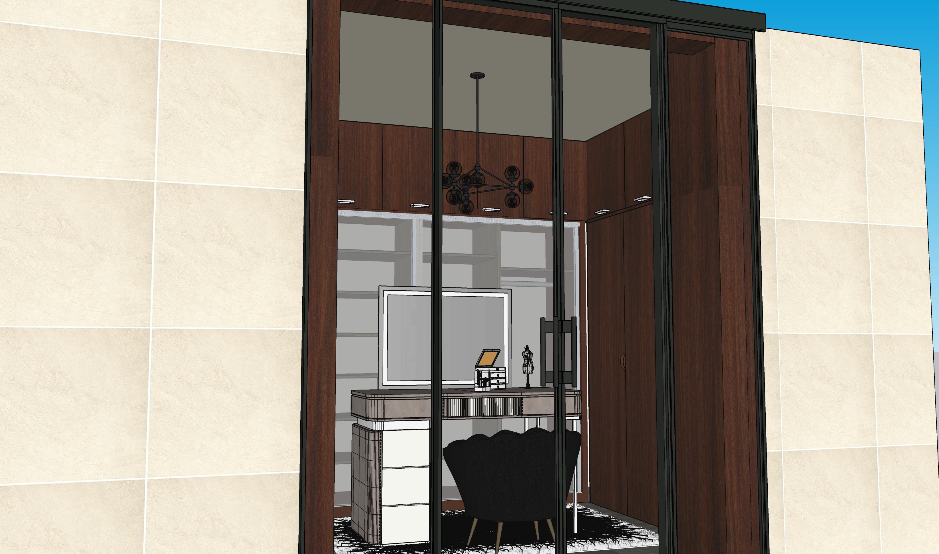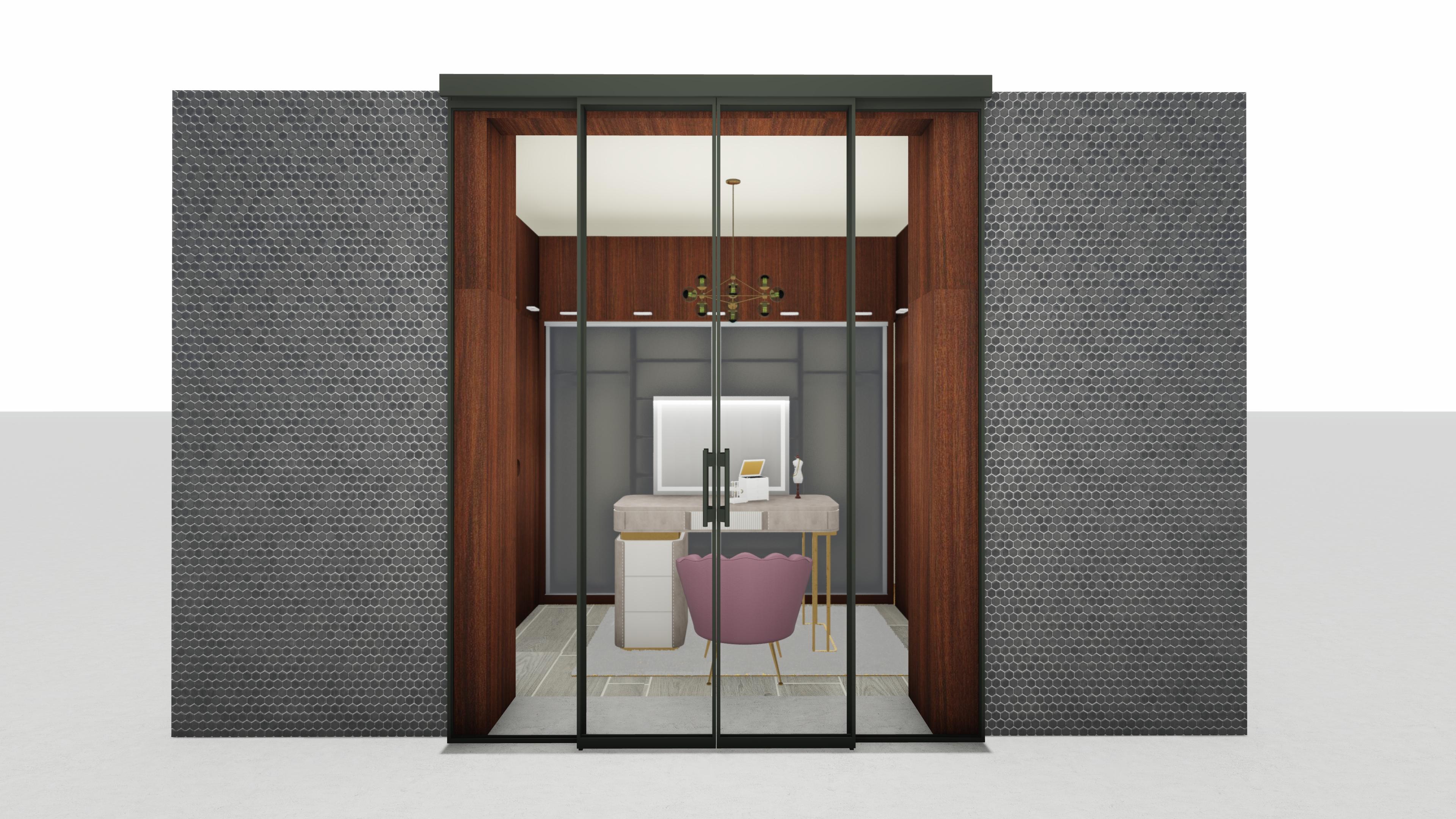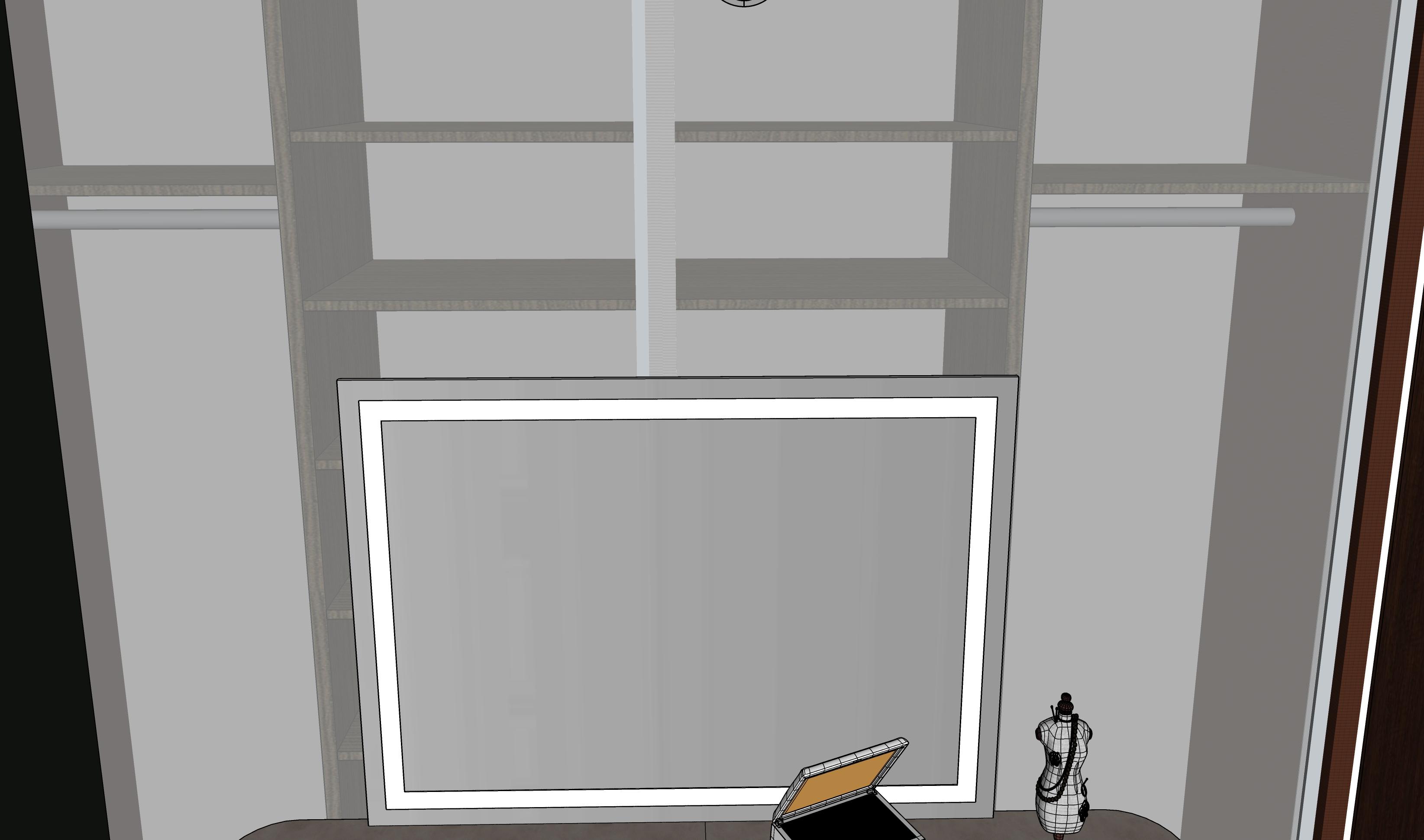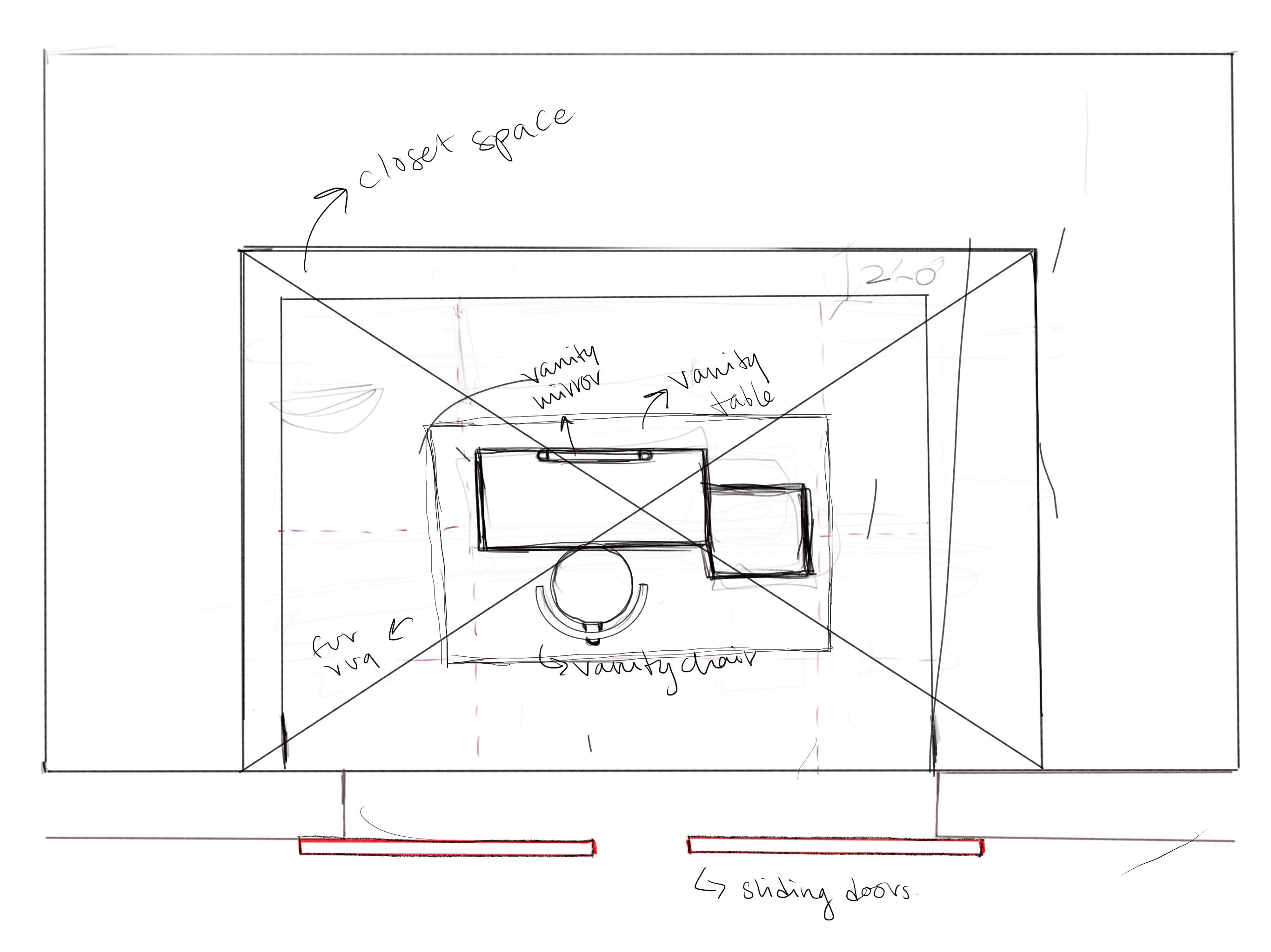My washroom had plenty of space for a vanity room and was not being used. I wanted to design a vanity room that would take up the existing available space and also improve efficiency. Though the space was available, it was a bit tight due to the thickness of the closet space. Therefore, spatial awareness was crucial to this design.