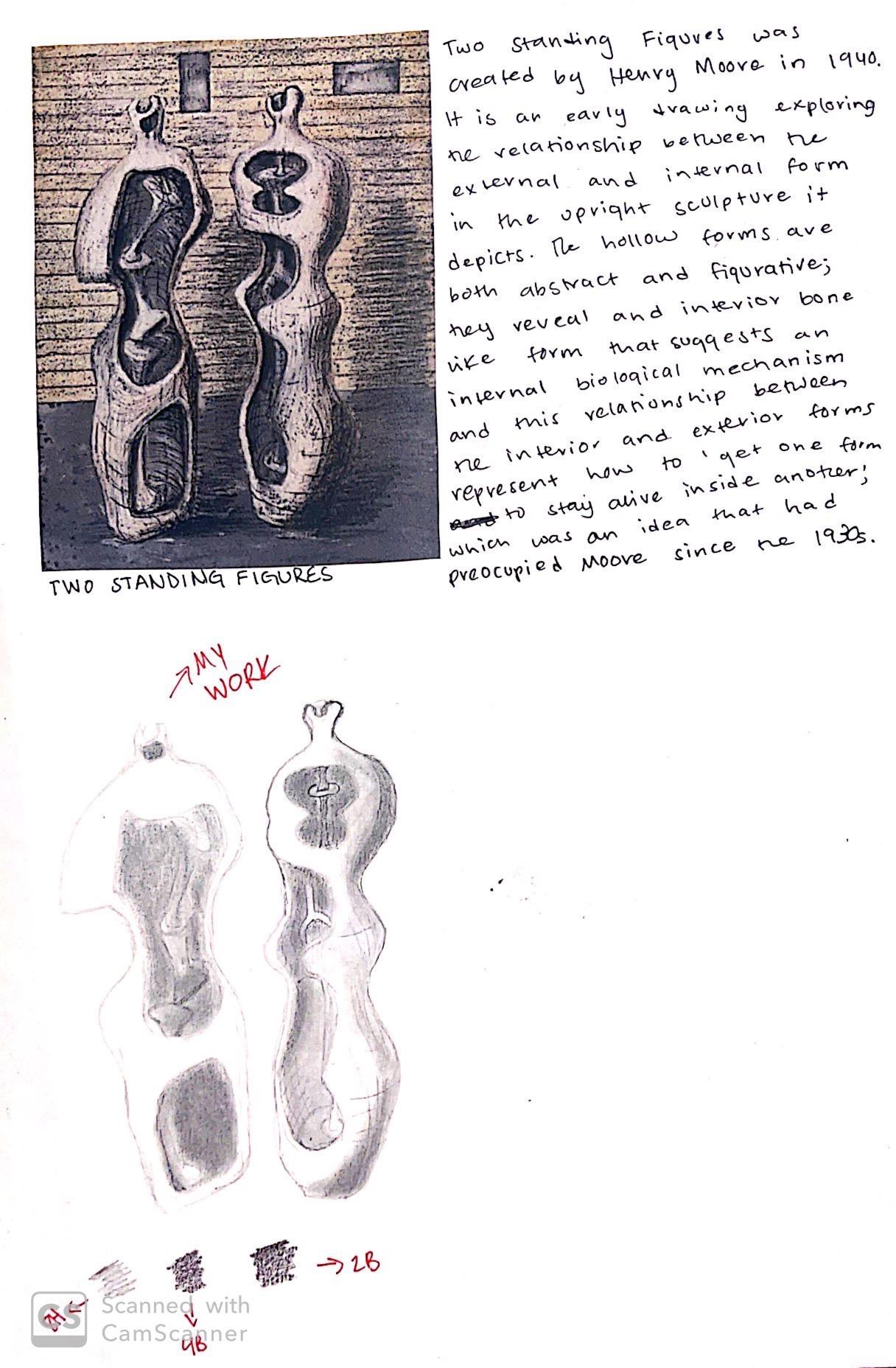 These are pages from my sketchbook during my time studying the IB Visual Arts course. I was able to study many artists such as Henry Moore and Alberto Giacometti. I also studied the female form to achieve my final artworks.