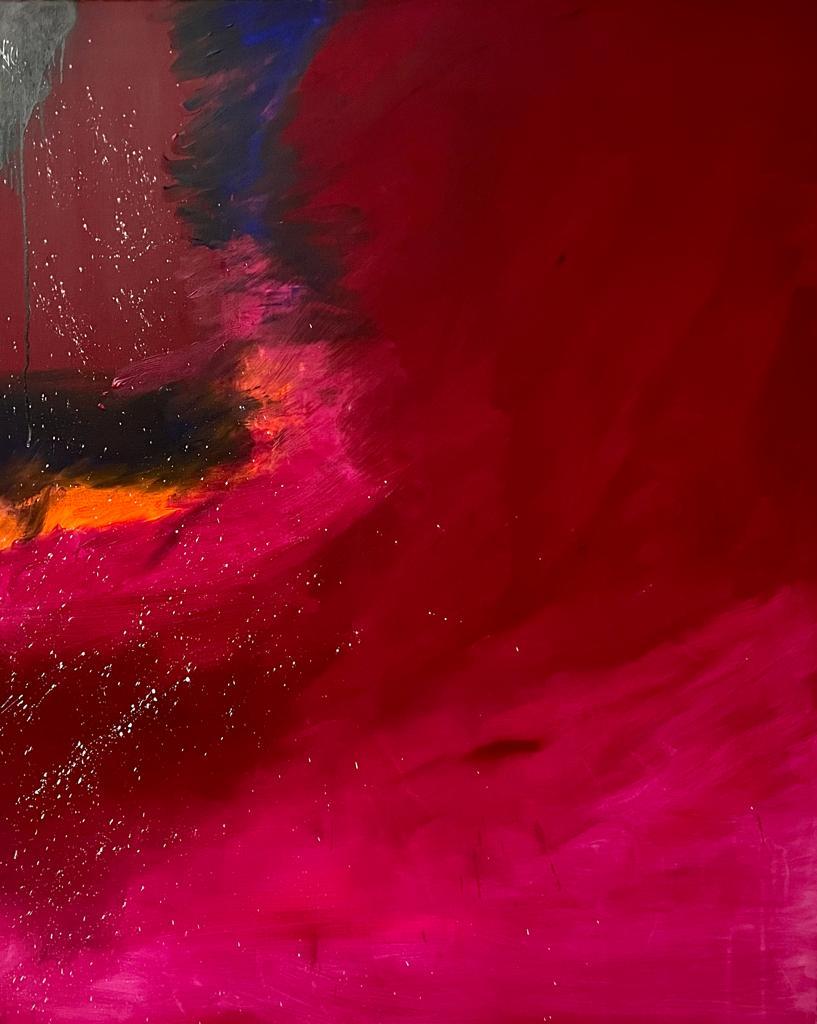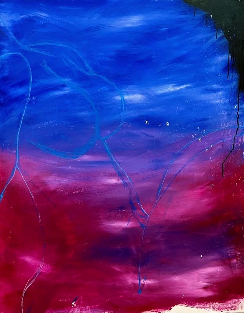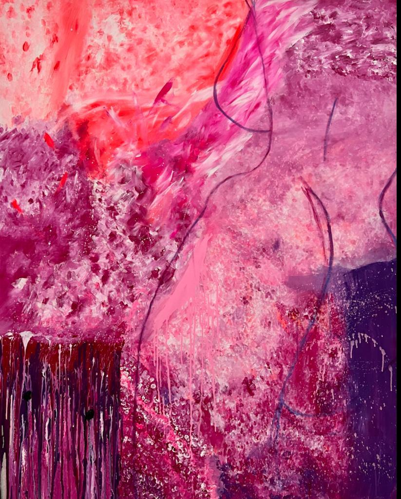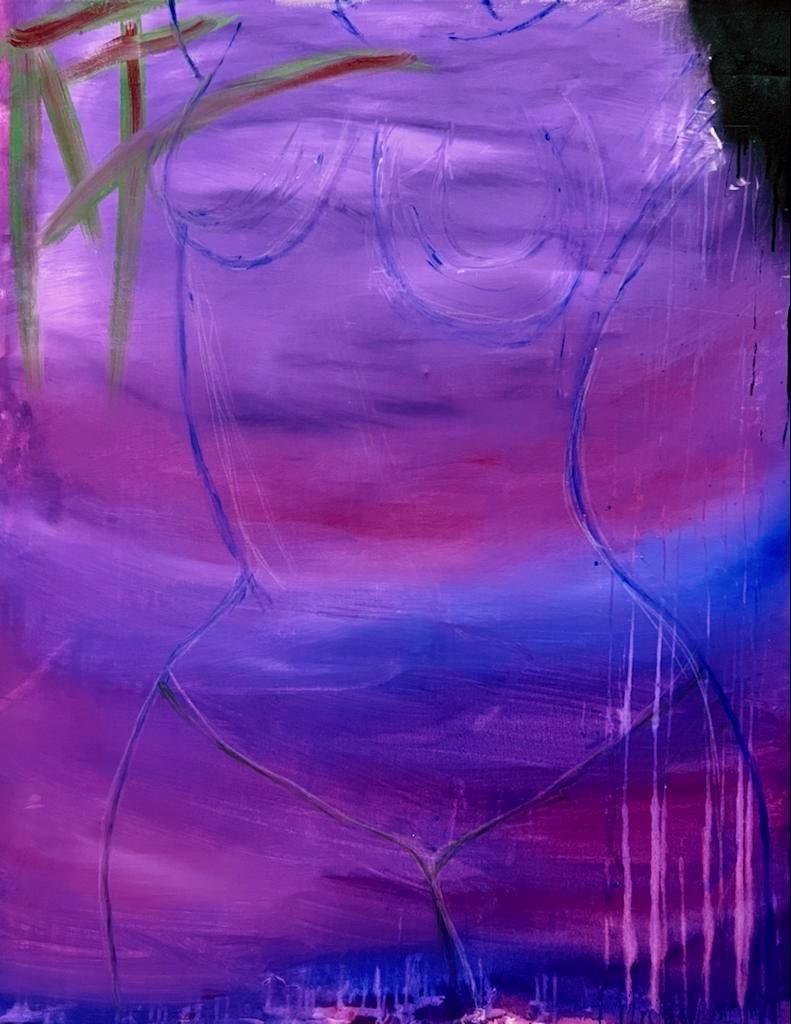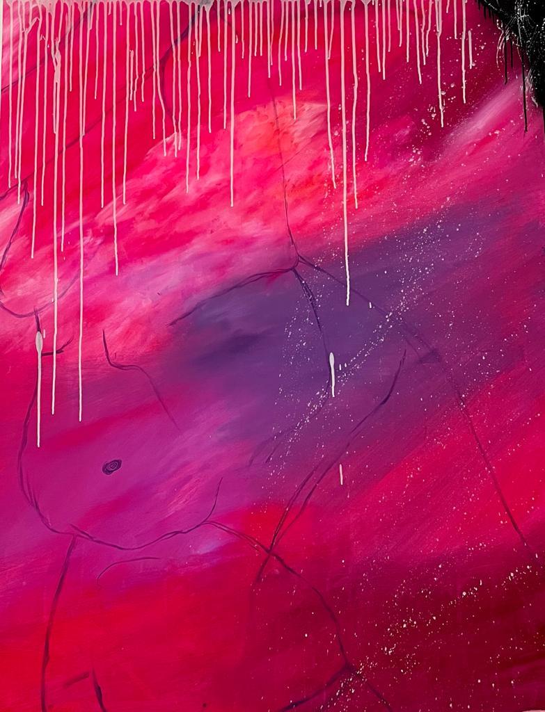 “Misunderstood” an artwork in the Lessons on Vulnerability series, is painted using acrylic on canvas. This artwork is a lesson on misconceptions. The background for this artwork was painted using dark colors such as dark blue, and dark, blood red with hints of pink. Inspired by the pressures of society; many ideas and thoughts are lost between layers and layers of misconceptions and restrictions. This painting encourages one to look past those layers. The female body is not missing, but rather, it is present within the layers. urge the viewers to let go of their misconceptions and truly “read between the lines".
