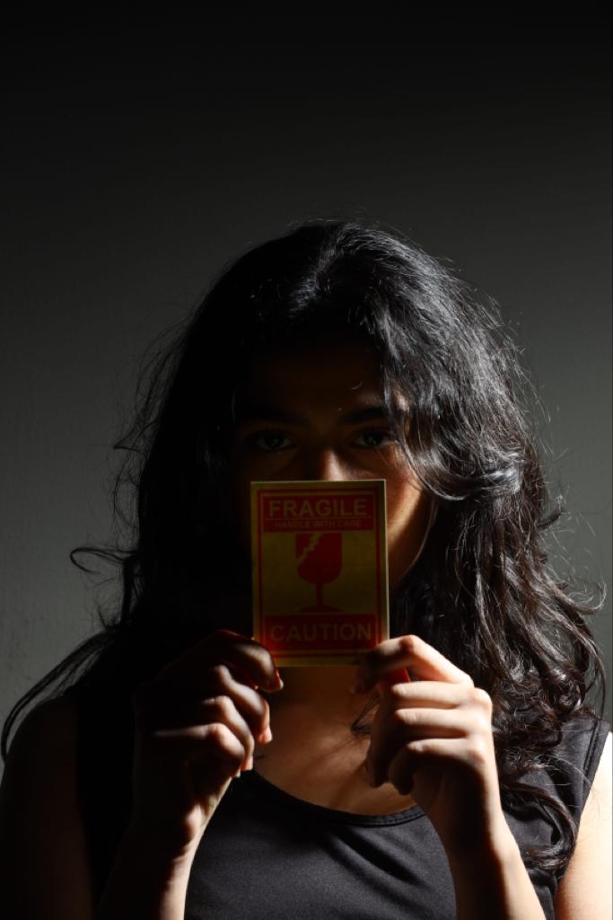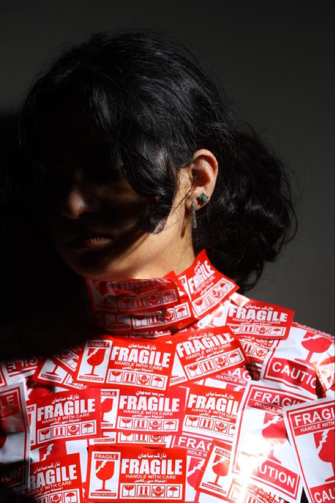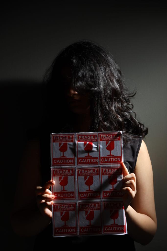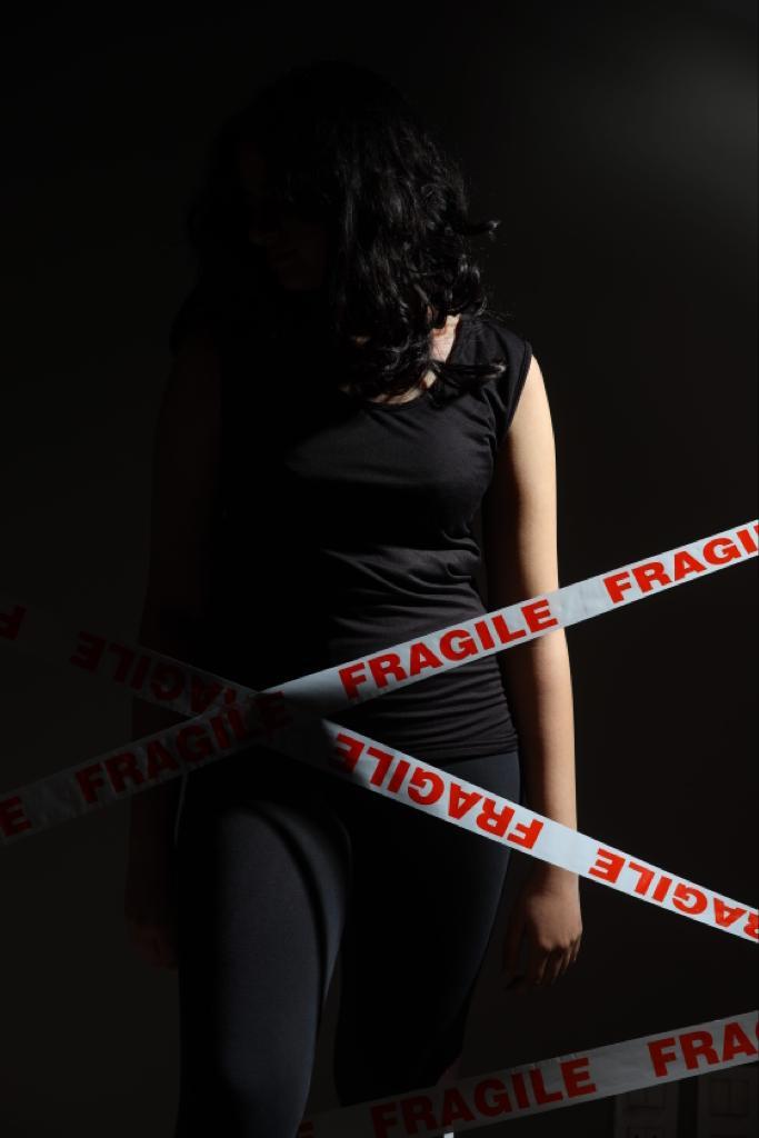 As part of the IB Diploma Programme Visual Arts HL course, I experimented with many different techniques in photography and was able to take good quality portraits with a Canon EOS R professional camera. These photographs all share a common element; fragile packing tape. The stickers reflect the fragility of the female body as a result of constant objectification and oppression.