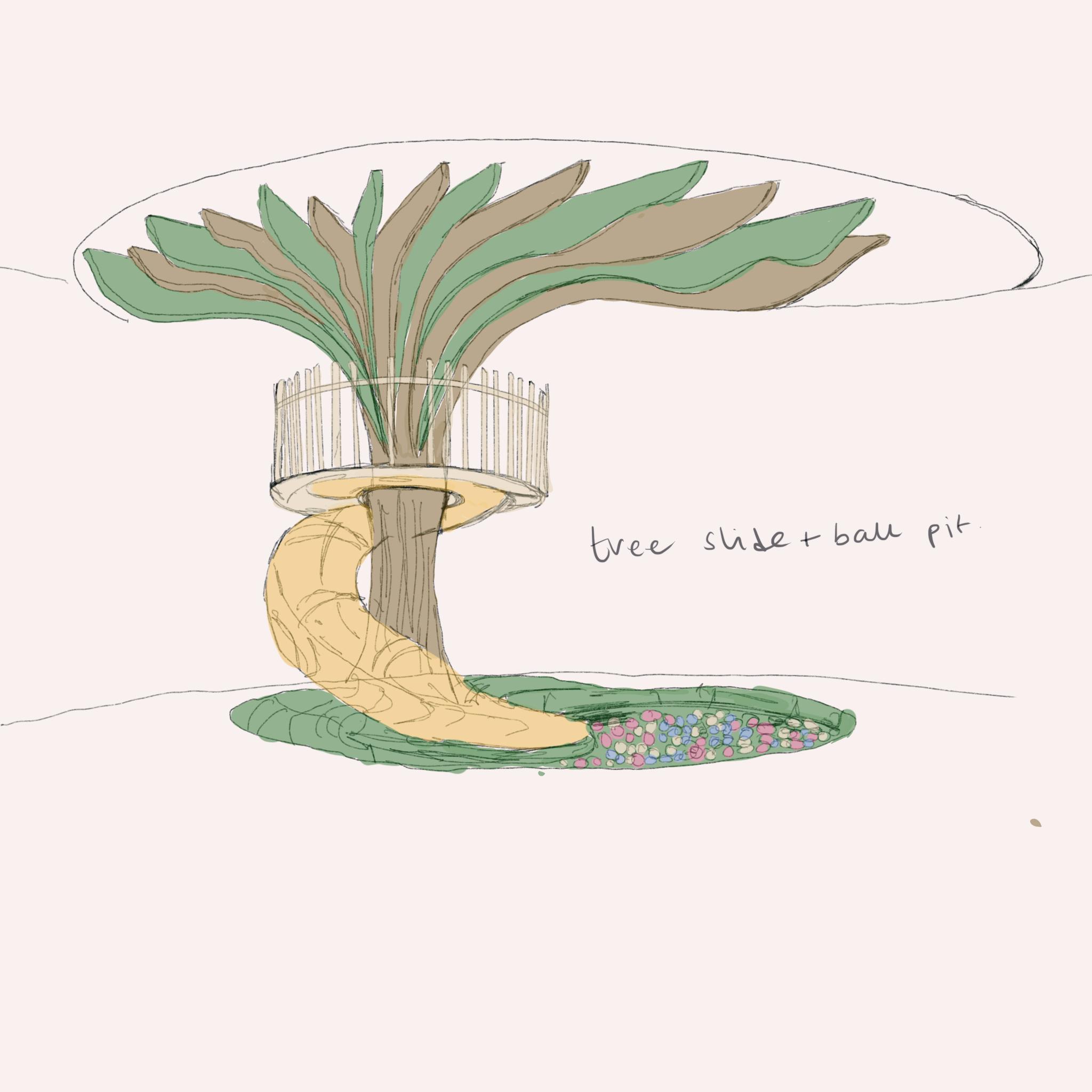 For the second sensory room on the first floor, I wanted to add a sensory play area in the form of a tree attached to a slide leading into a ball pit. I chose this room for the sensory tree because there is a beautiful view of suburban agricultural land; perfect location for a sensory room.