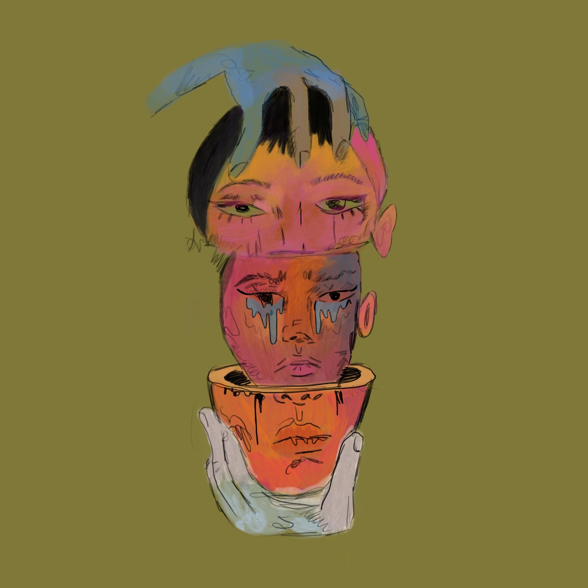 The theme of this artwork revolves around the mental and psychological pressures women have to face due to societal expectations, lack of freedom and gender stereotypes. The artwork, titled “Mind Over Matter”, shows woman’s face pulled apart in half, revealing a crying face; a reflection of her real emotions. I experimented with different colours, synonymous with the multitude of feelings that overcome her.