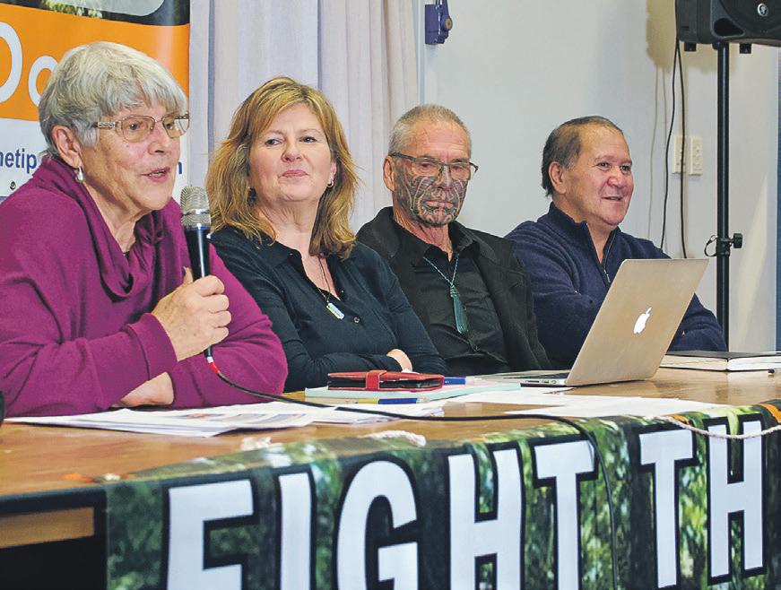 From left, Fight the Tip’s Sue Crockett, Michelle Carmichael and Mikaera Miru, with Alan Riwaka of Ngāti Whātua. A fundraising auction raised $2300 after the meeting.