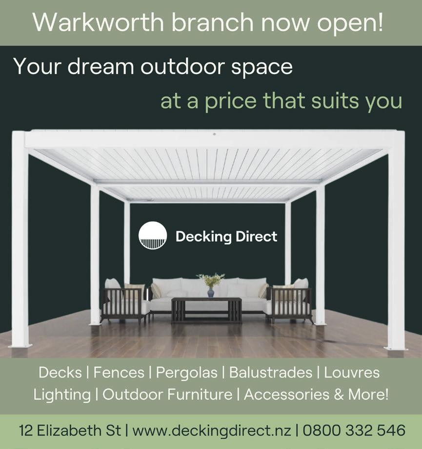 FREE continued page 2 off the Pyramidz Architecture drawing board ... built by Warkworth Construction New Build: Black Barn, Matakana KYLE BROWN 021 494 278 www.warkworthconstruction.co.nz AFFORDABLE • EFFICIENT • RELIABLE Building & Renovations • Over 30 years experience PLANS CONSENT BUILD Community Newspaper of the Year | Media Awards 2024 Matariki P16-18 Construction P20-35 Wastewater battle takes shape P3