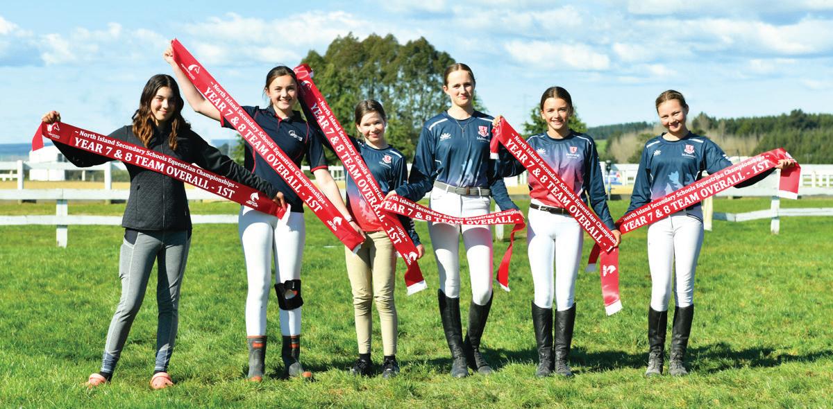 The North Island Secondary Schools Equestrian Champs took place in TaupŌ over 2-5 September. Our team, Ashley, Alice, Alex, Eva, Zailie and Abi, won the Overall Year 7 & 8 prize, which is an accumulation of all four days and includes CTR, Dressage, Arena Eventing, Show Jumping and Show Hunter.