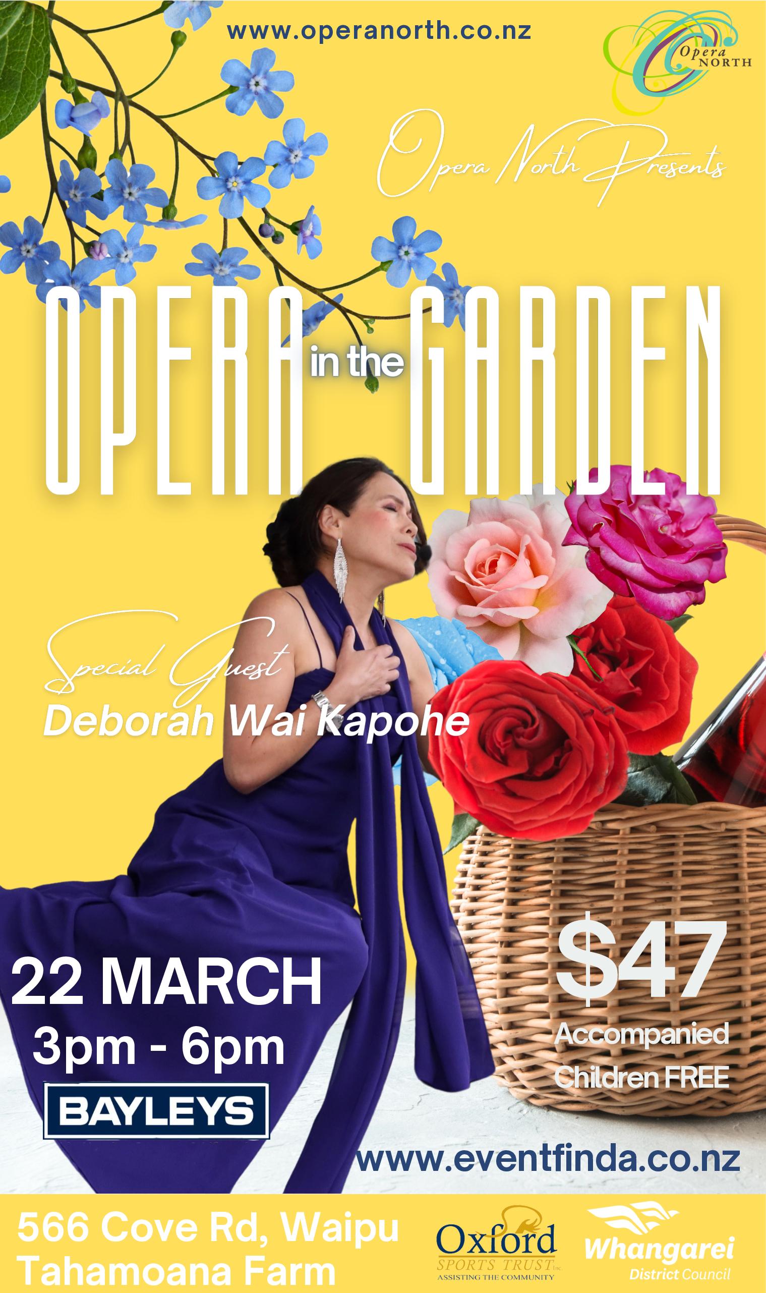 The concert will be held at the Tahamoana Angora Goat Farm, 566 Cove Road, Waipu Cove, from 3pm to 6pm. Entry $51.48; kids free. Tickets available at: operanorth.co.nz