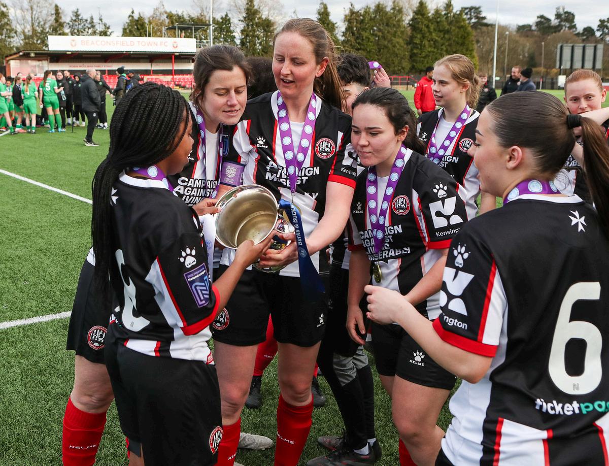 Maidenhead United Women finally got their hands on the Berks & Bucks Senior Women’s Cup for the first time with victory in the final against hard-working Tier 6 side Newport Pagnell Town at Beaconsfield on Sunday 16th March